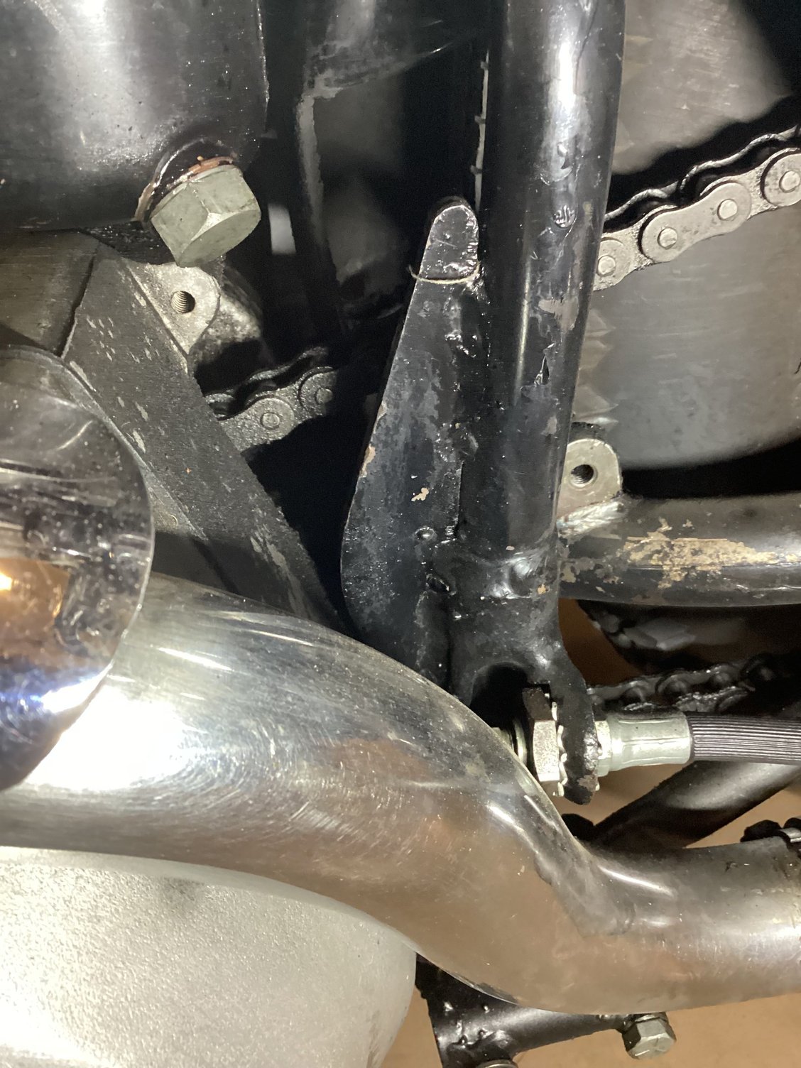 I don’t know much of the history of the bike other than it was torn apart for many years. The frame was cracked and my buddy welded up the crack and added the plate IIRC.