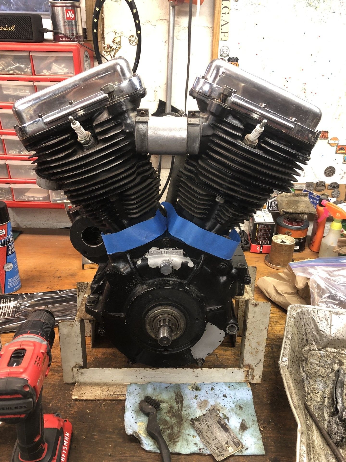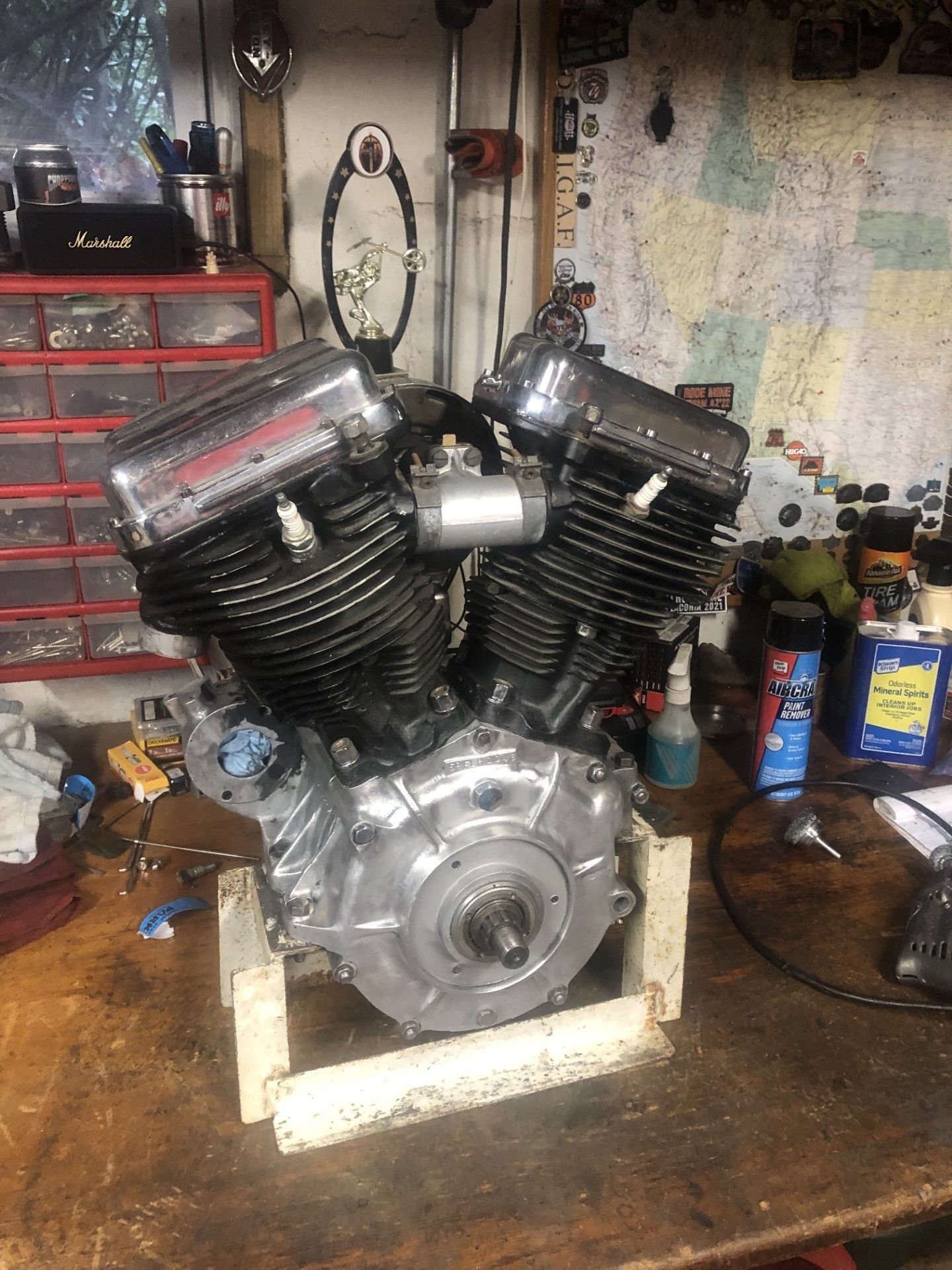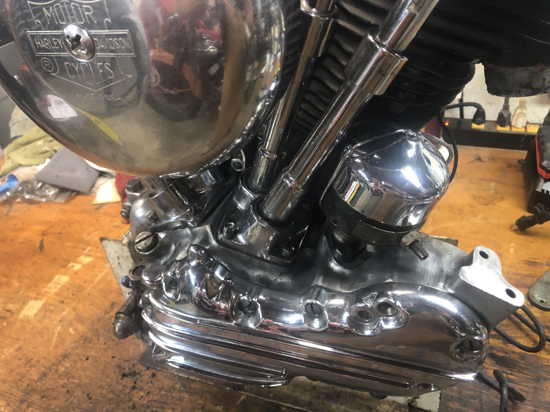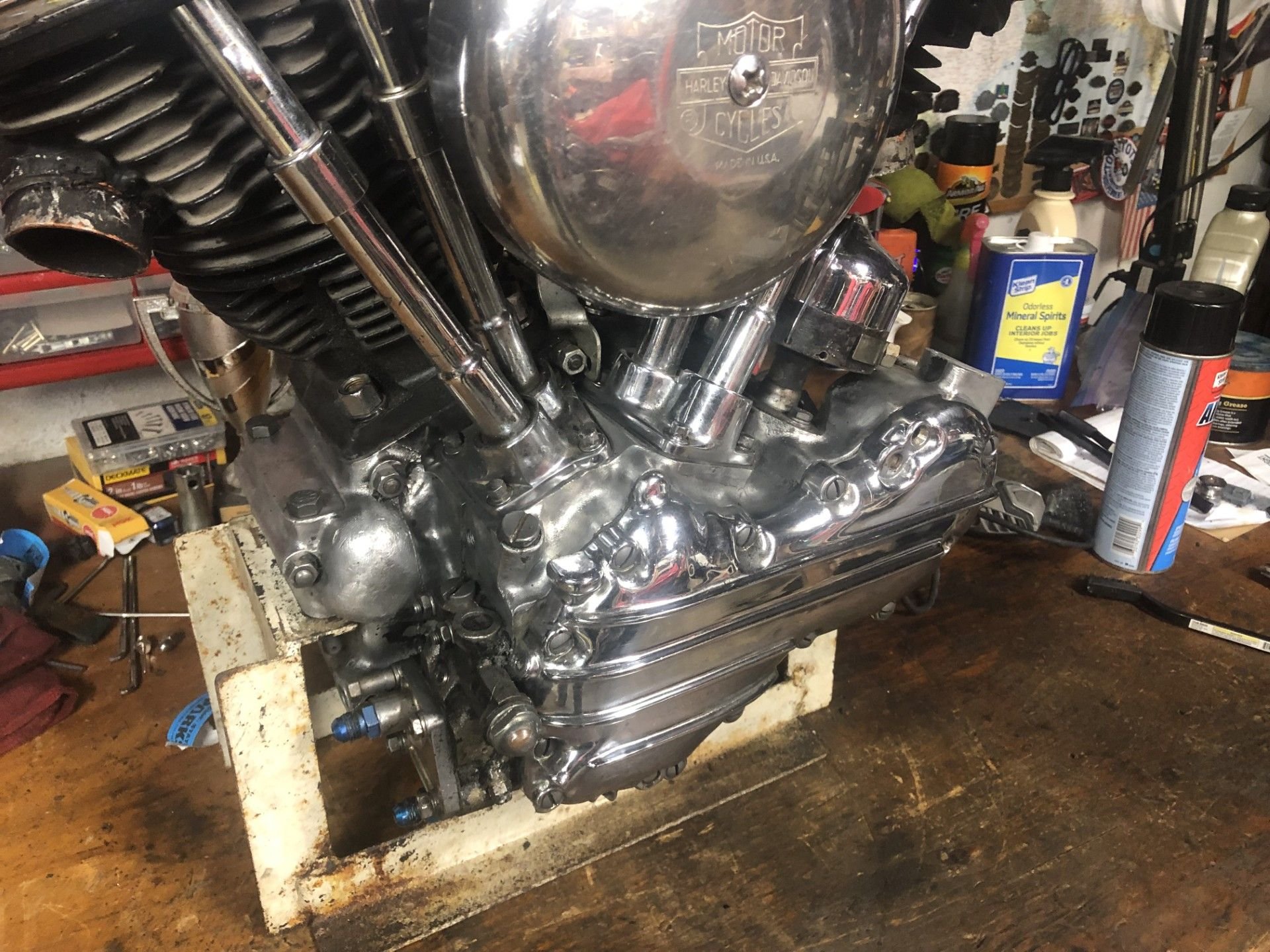 If I was pulling the motor apart, the jugs and heads would go silver like my Shovel. Unfortunately the cam cover, lifter blocks and half of the oil pump are chrome!?!??! Ignoring it all for now, maybe the motor will never need to come apart. For now I am trying to piece it together and see if she will start. Chrome bits in the wrong place is a tomorrow problem.