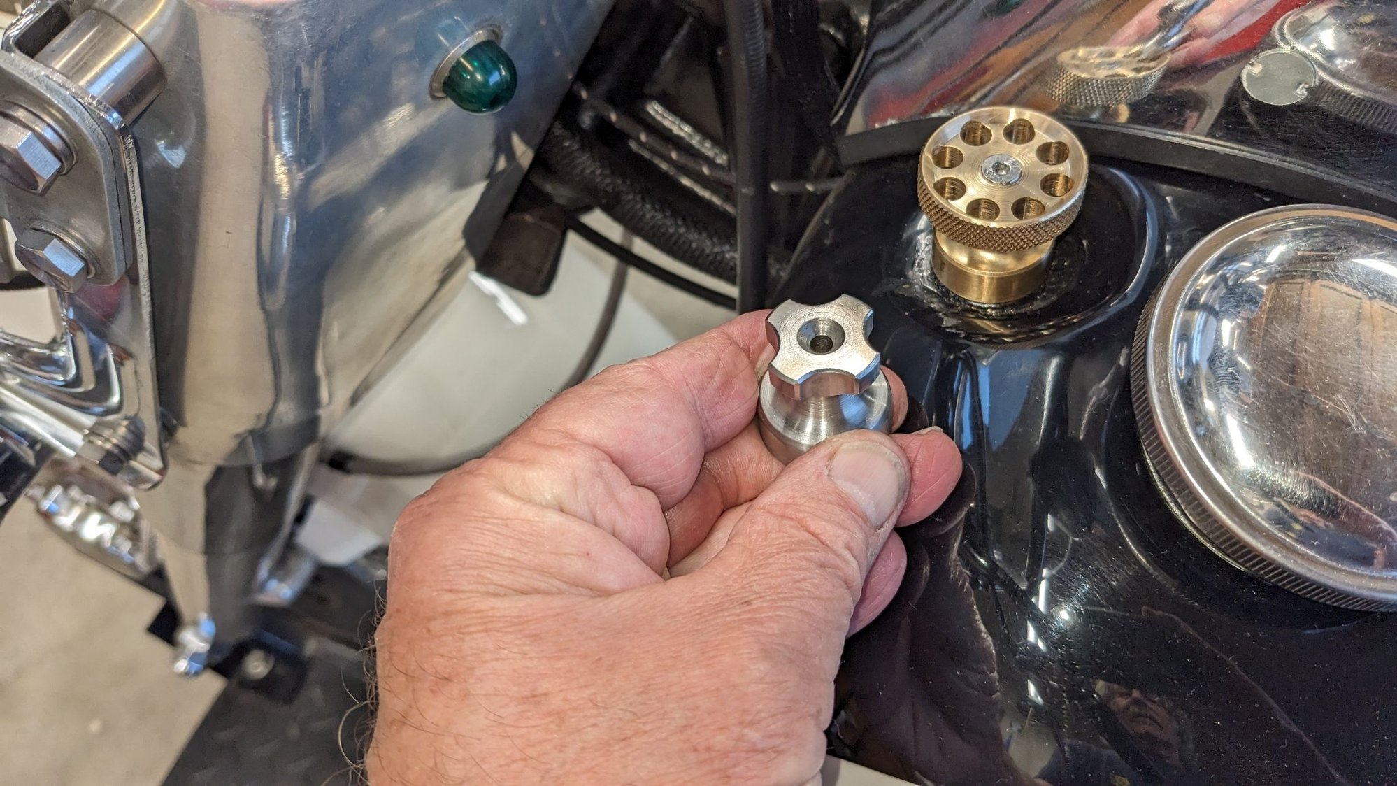 A week later I put a gallon in the tanks, and the bike started right up.. Go to get my gear and while warming up the bike dies and won't start. It goes back into the garage. I'm beginning to wonder something wrong with the petcock.. The pan has the stock fuel shutoff that I rebuilt with a valve needle point made out of Peek plastic. If I close the valve tightly is seals but the valve handle is small and it sticks when tryin g to open. I was thinking there was something wrong with it.