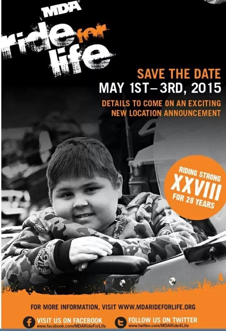 This young boy in the RFL flyer from two years ago is Patrick. Every year the Eastern Harley-Davidson dealers association puts on the MDA Ride for Life in Eastern PA.