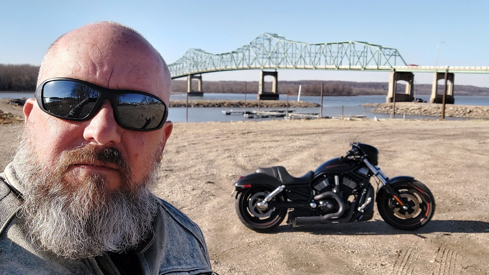 In honor in what would have been my Dad's 79th birthday i took his Night Rod out forva river run. I wore his jacket and chaps as well.