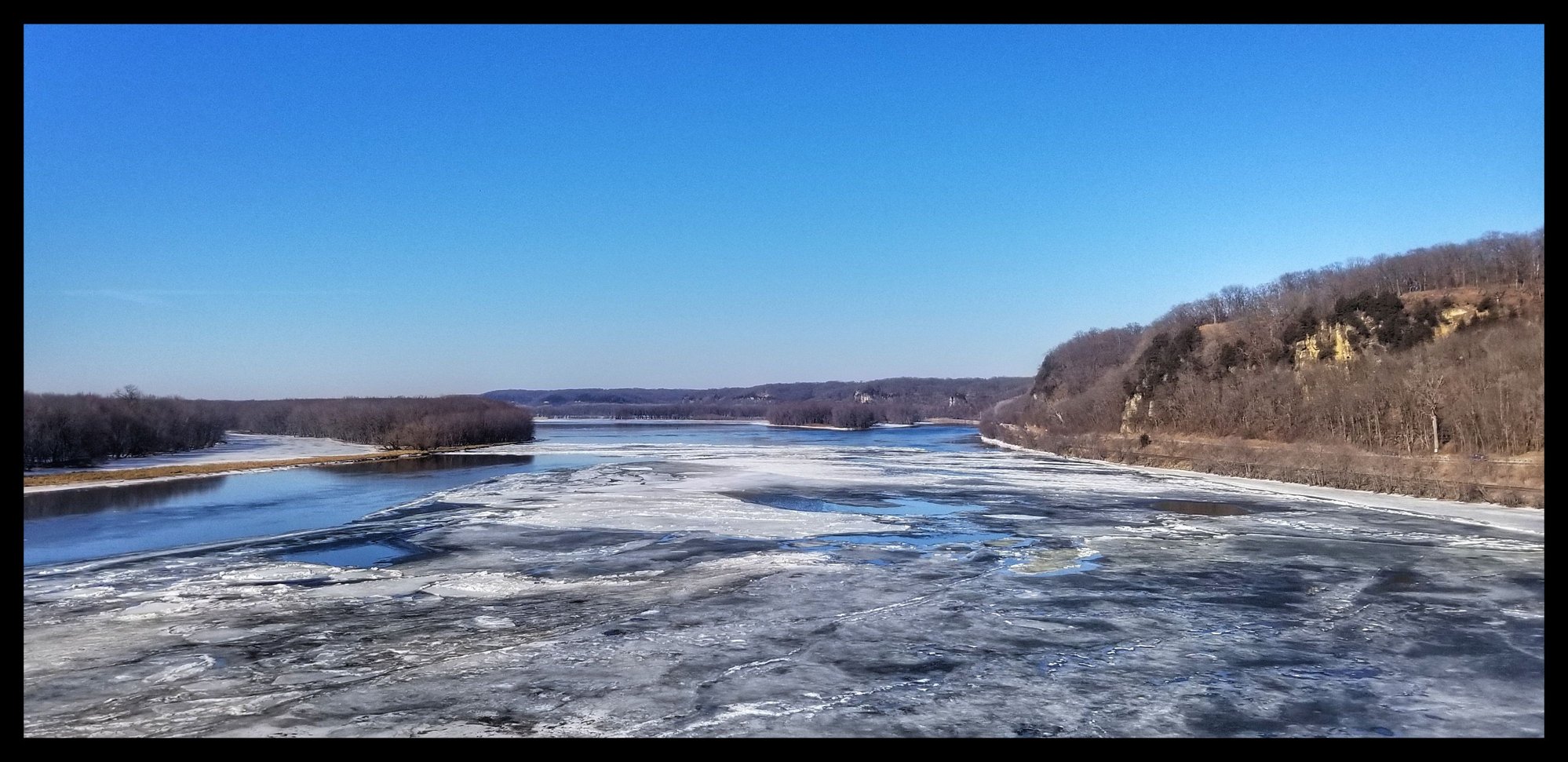 40 degrees when i left. Lock and dam 14 in Iowa. Lock and dam 13 in Illinois. The Mighty Mississippi from the Savanna / Sabula bridge. Cant beat this for a February day. 513 miles for the weekend. We're under a winter storm warning now, so it may be awhile before i ride again.