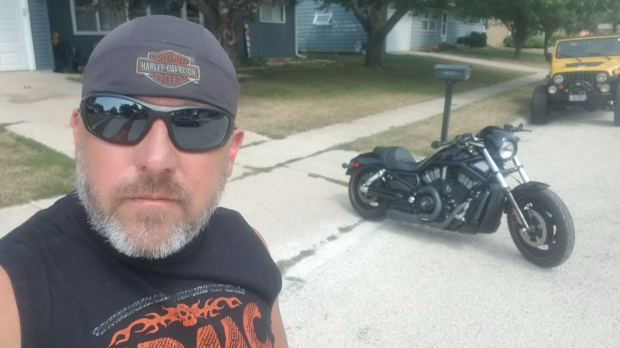Pic of the recently washed bike, prior to starting a new bug collection. Our customary pre-ride selfie. First pit stop. I know how to make the wife happy she came along. A glass of wine, a new coozie and of course, a new tshirt. Oh, and a second glass of wine. Pretty good ride, just within the wife's happy zone, mileage wise.