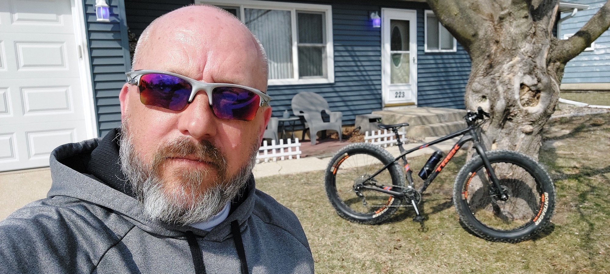 There is a bald eagle in the trees behind my bike....really, it's there.