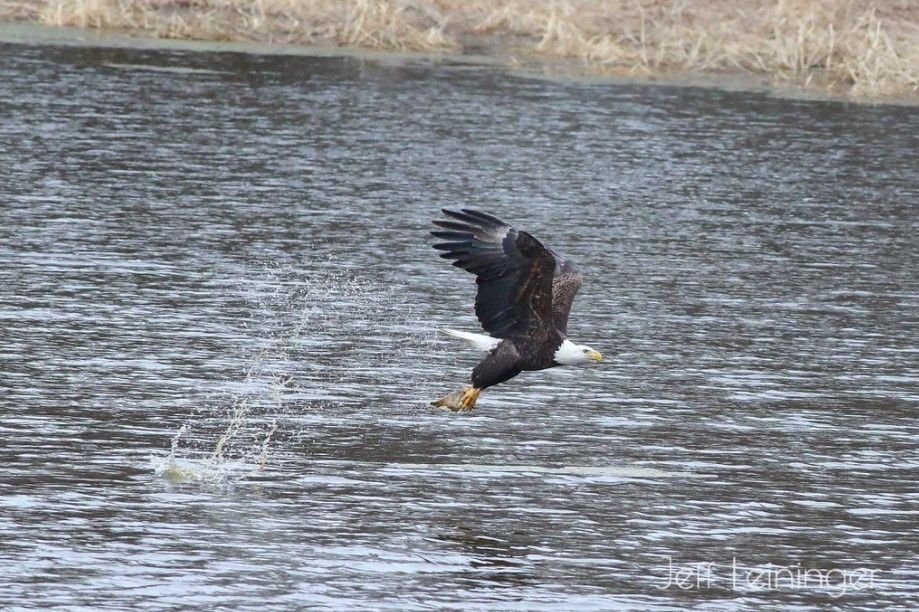 Here's a sequence I got of a bald eagle snagging a fish.