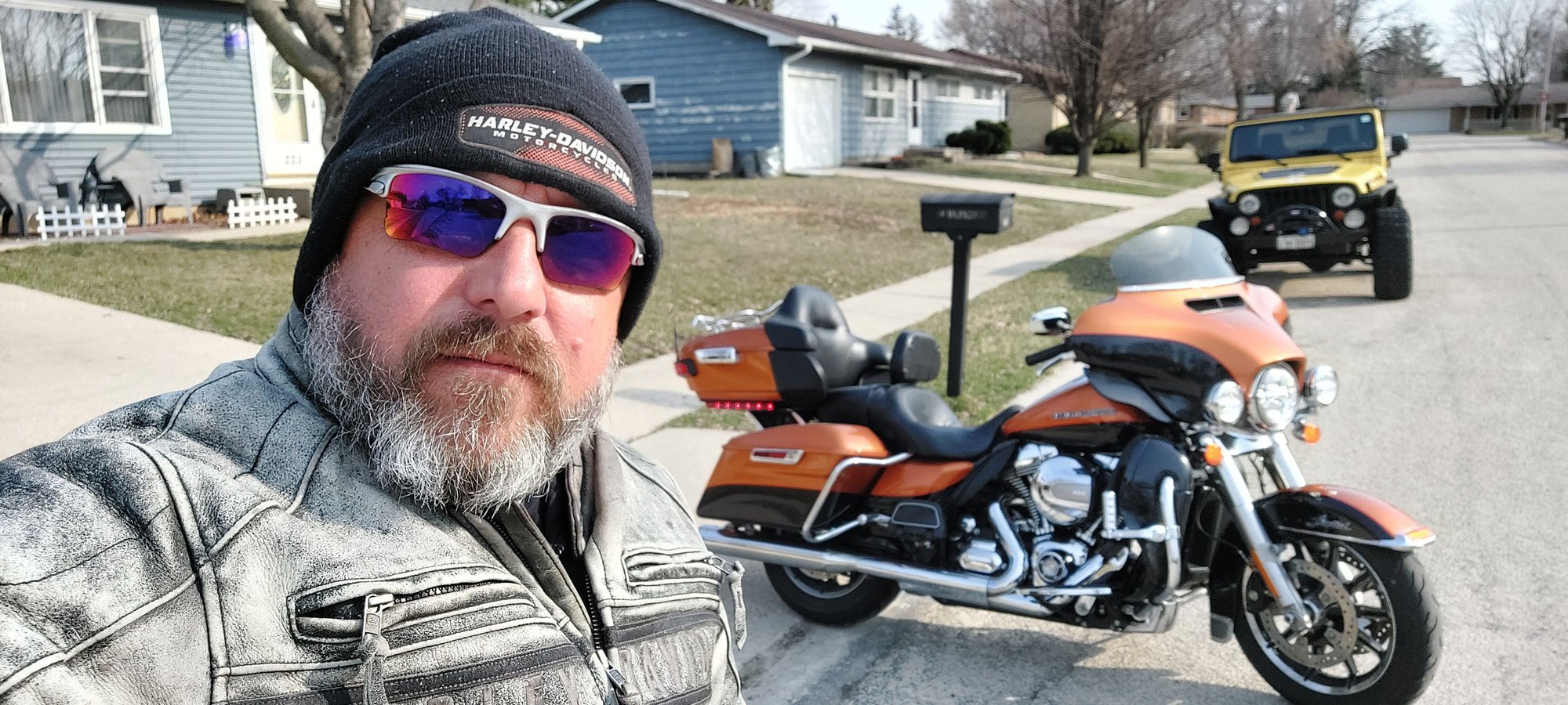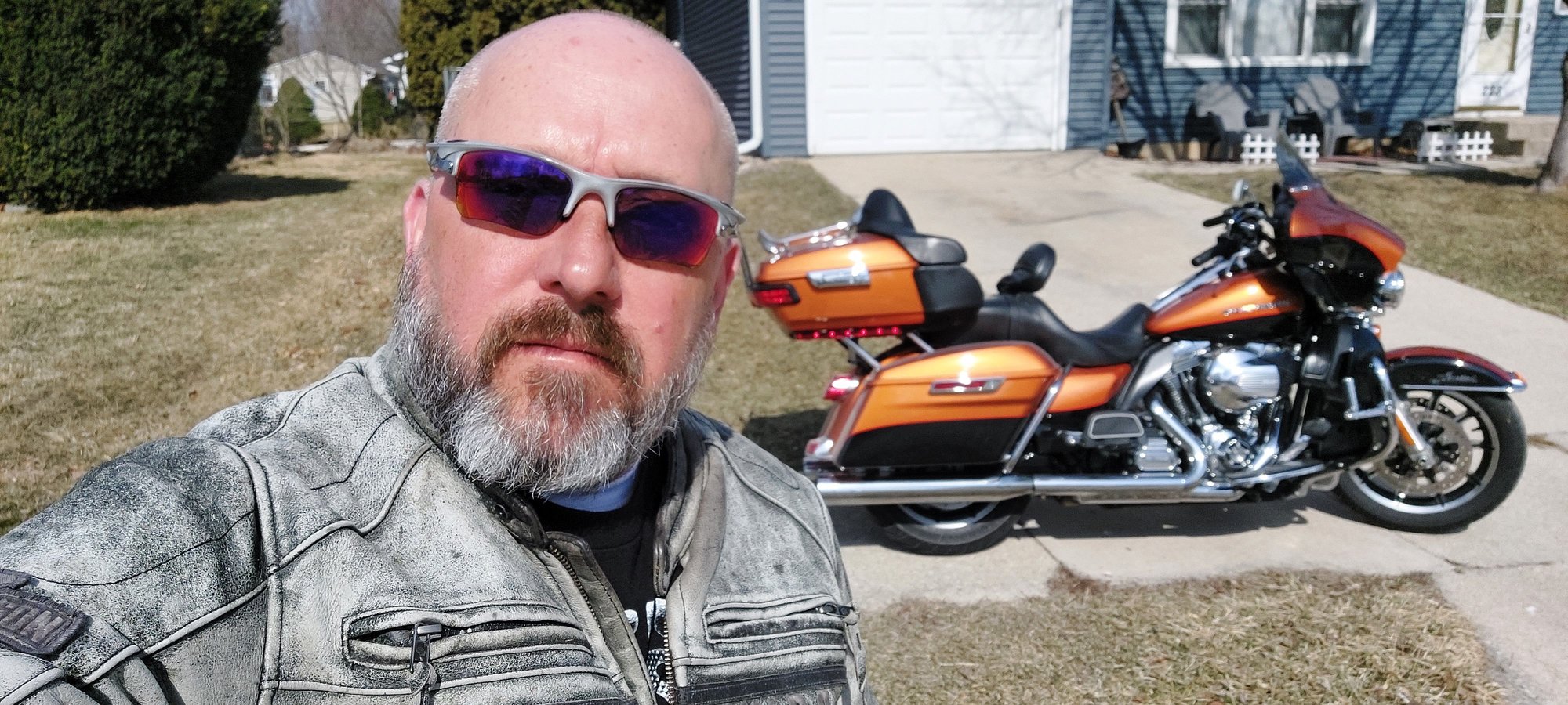 The sun was out, and temps were supposed to hit the upper 50's, so I decided to hit the road. I wore my Dad's leather's today. He passed away on my birthday this past December and is THE reason I love motorcycles.