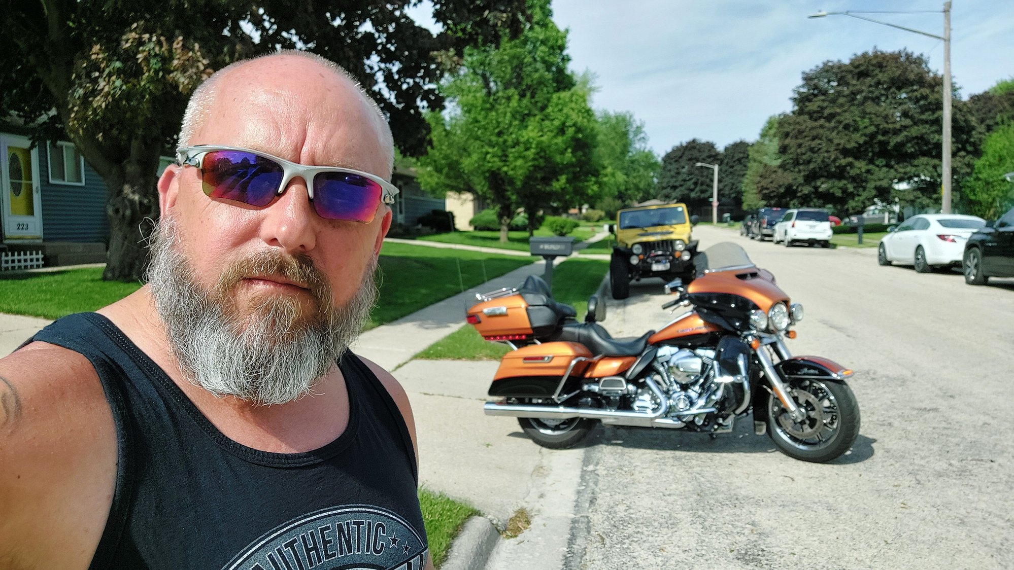 Ready to ride my Dad's bike, wearing my Dad's jacket. The jacket is over 40 years old. It'll be 6 months, since we lost him, in another week.