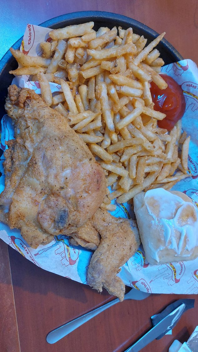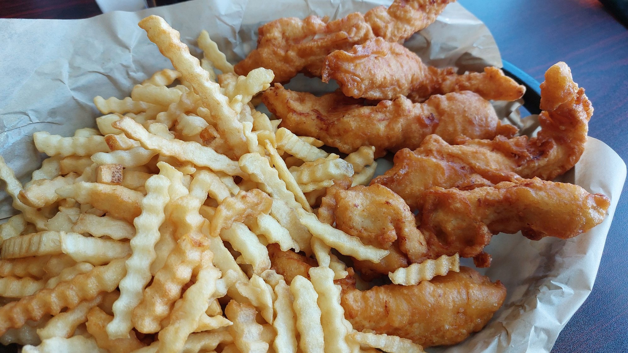 I had to try their chicken strips. The wife had fish tacos. Both were really good.
