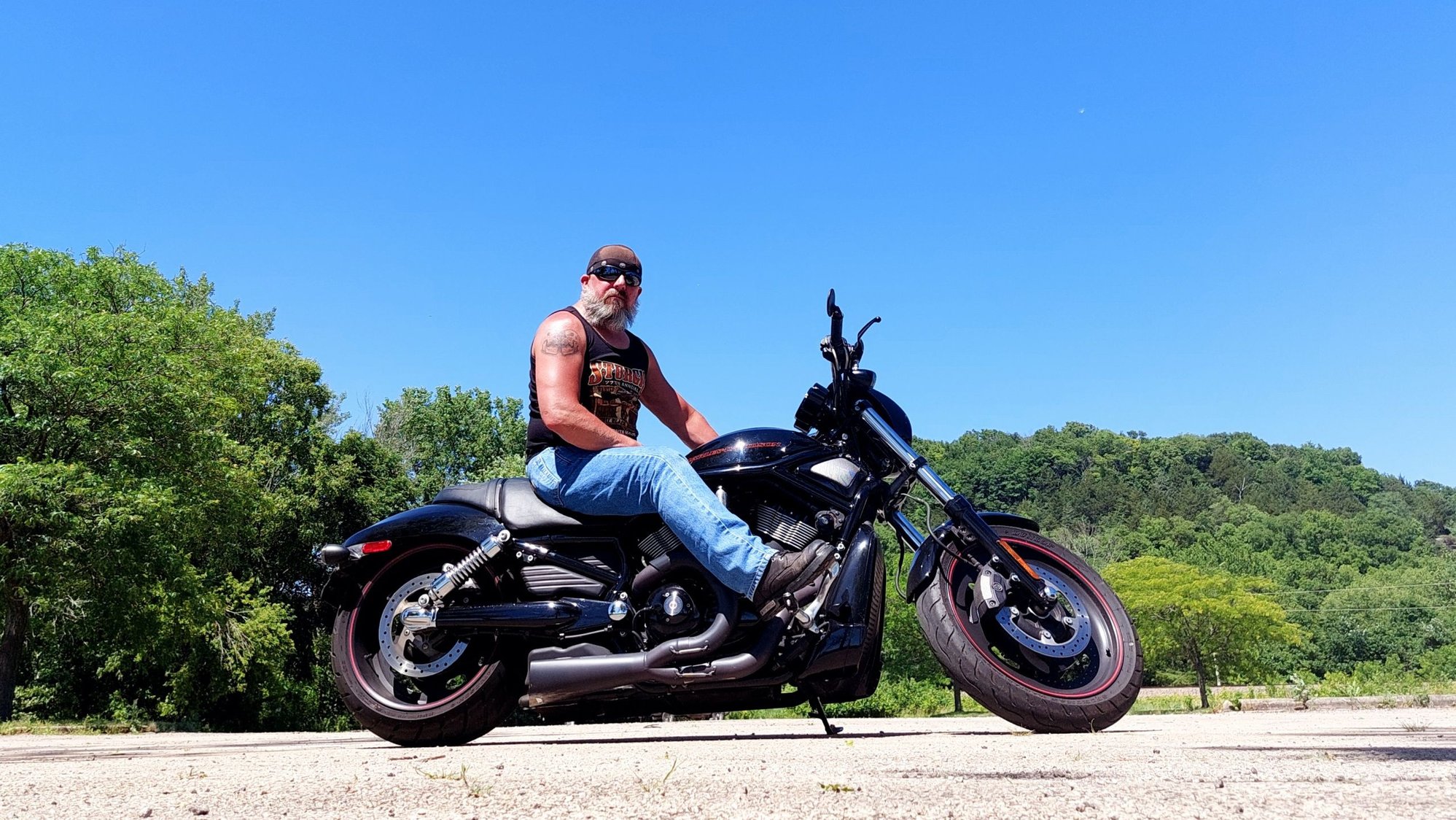 Today was my first Father's Day without my Dad. Since my daughters couldn't be home, I decided to hop on my Dad's Night Rod, and go for a ride.
