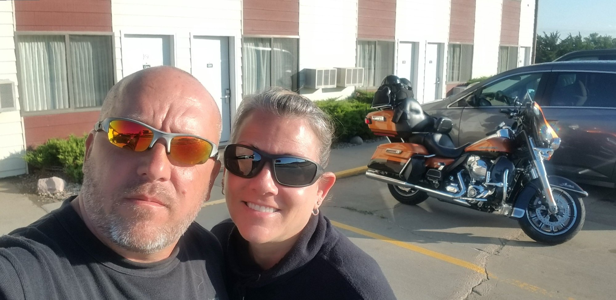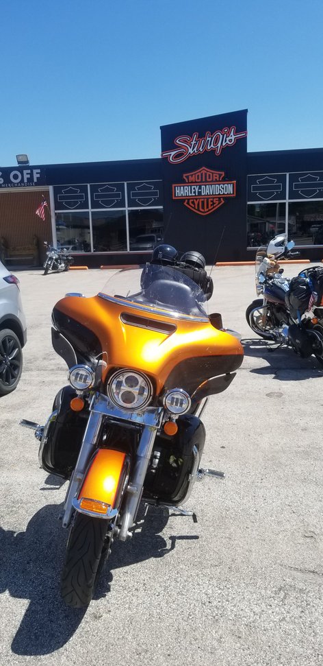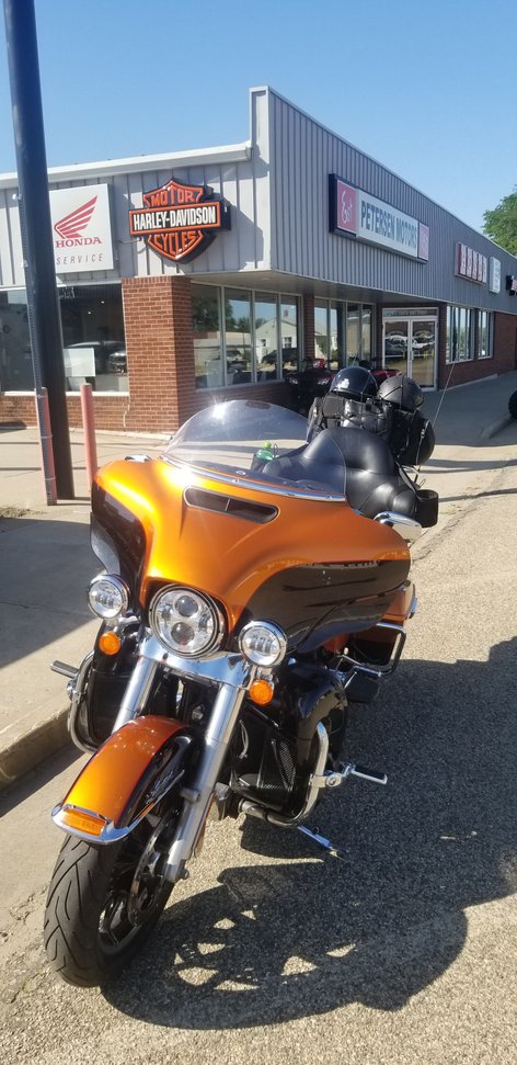 The wife got stung by a bee, on the neck, as we entered Pierre (sp). After she calmed down we stopped at Petersen Harley / Honda.
