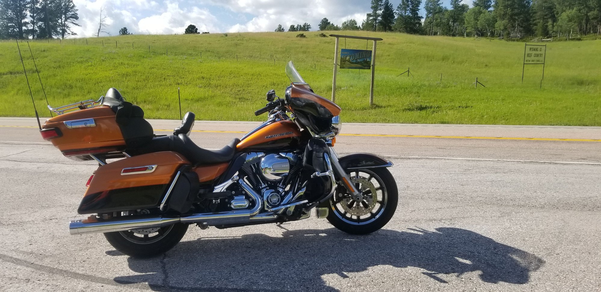 We made it Wyoming before reversing course. We went back to Deadwood, stopped at the Harley store, walked around, then headed back to Spearfish.