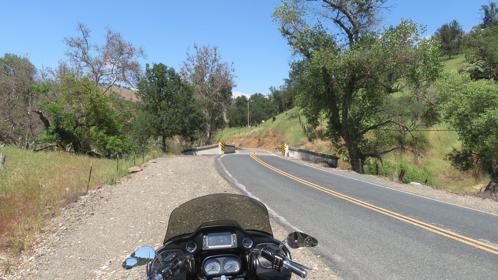 Been trying to get in a decent ride for the last three weeks but something always came up to prevent it, weather, meeting with contractors over issues I was obligated to deal with, road closures on my planned route, Dr.'s appointments canceled and rescheduled, it was always something. Finally just turned off my phone, threw a few bottles of water in the saddlebag and rode out. 276 miles of two-lane twisty roads with little or no traffic later I think I have regained a little sanity. Didn't stop for many pictures except for this spot, 1923 built bridge over Cottonwood Creek.