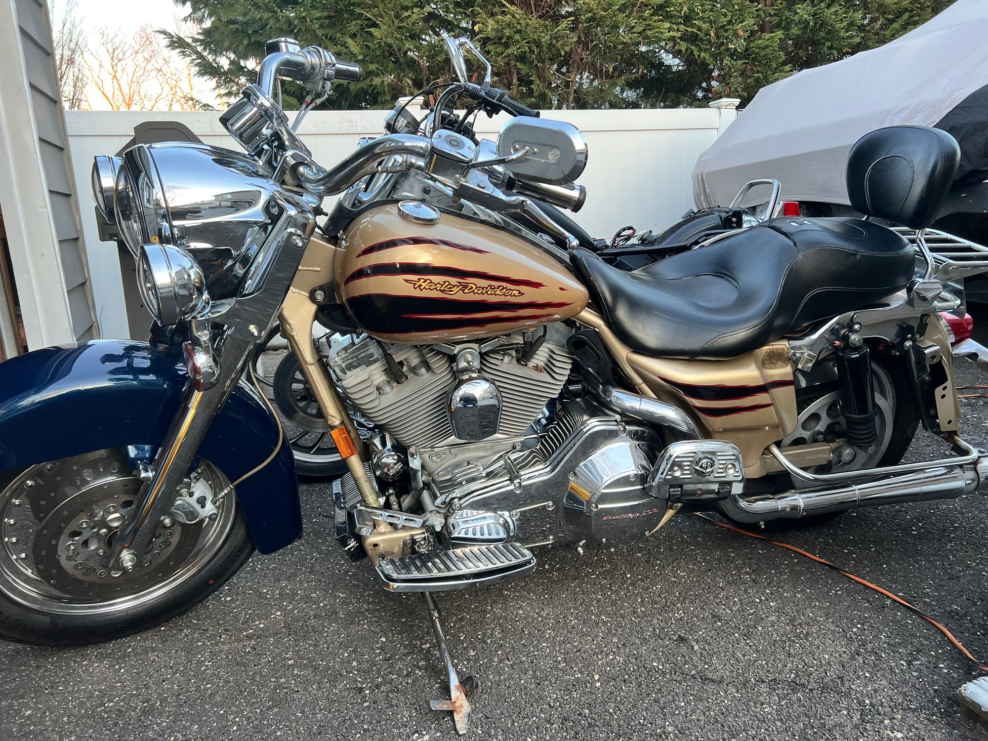 My first Harley. Actually my first bike in over 25 years, it's been a while!!! Original owner took good care of it and made a few changes with new exhaust, got rid of the solid front wheel, and a shorter front fender. The front fender is matching paint but doesn't have the graphics to match the rest of the bike. I like the shorter fender -vs- the stock. But I would like to have the matching graphics. Not sure how it that can be done. I do have the factory front fender.