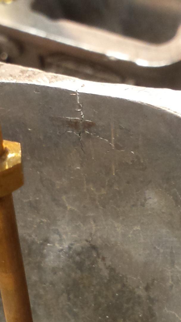In the process of a complete teardown and cleaning of the carb I found a crack in the float bowl. Not sure if this was existing or if i did it. Too long of a mounting bolt. Just can't believe i didn't notice it as many times as i removed the bowl