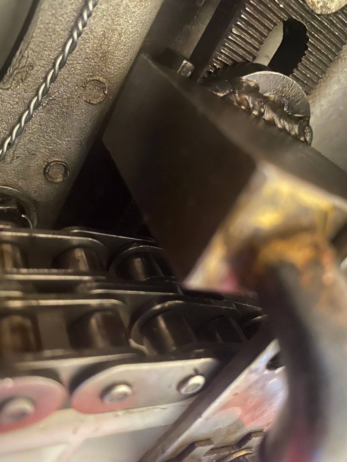 I am still having problems with my primary, I reassembled every thing and all is going well I thought. I have put a different inner primary case because the heel toe shifter housing was in better condition than original ,it came off same model bike. Replaced compensator with used OEM part, new primary chain. New clutch housing ,new output drive sprocket,and new chain adjustment shoe. I put the clutch plates back in and adjusted clutch to where I though it should be. Made the primary shoe adjustment and was turning the chain to check for tight spots and I heard a clacking noise. The chain is hitting the outside bracket of the primary chain adjuster. I fooled with it until I ran out of ideas. So I tore everything apart again and pulled the spacer behind the engine shaft extension an partly reassembled big improvement clacks once in a while but I don’t think it is right. I need help. Pics to follow. You can see the chain on the edge of the shoe Pulled out 60 thousandths spacer out and put things bac on Removing spacer moved chain over , I thought I measured right and the spacer belongs in there. I still think the chain should be over farther yet. The way the chin ride on the clutch basket without spacer. The what the chain rides on compensator without spacer I really don’t know what I am to do