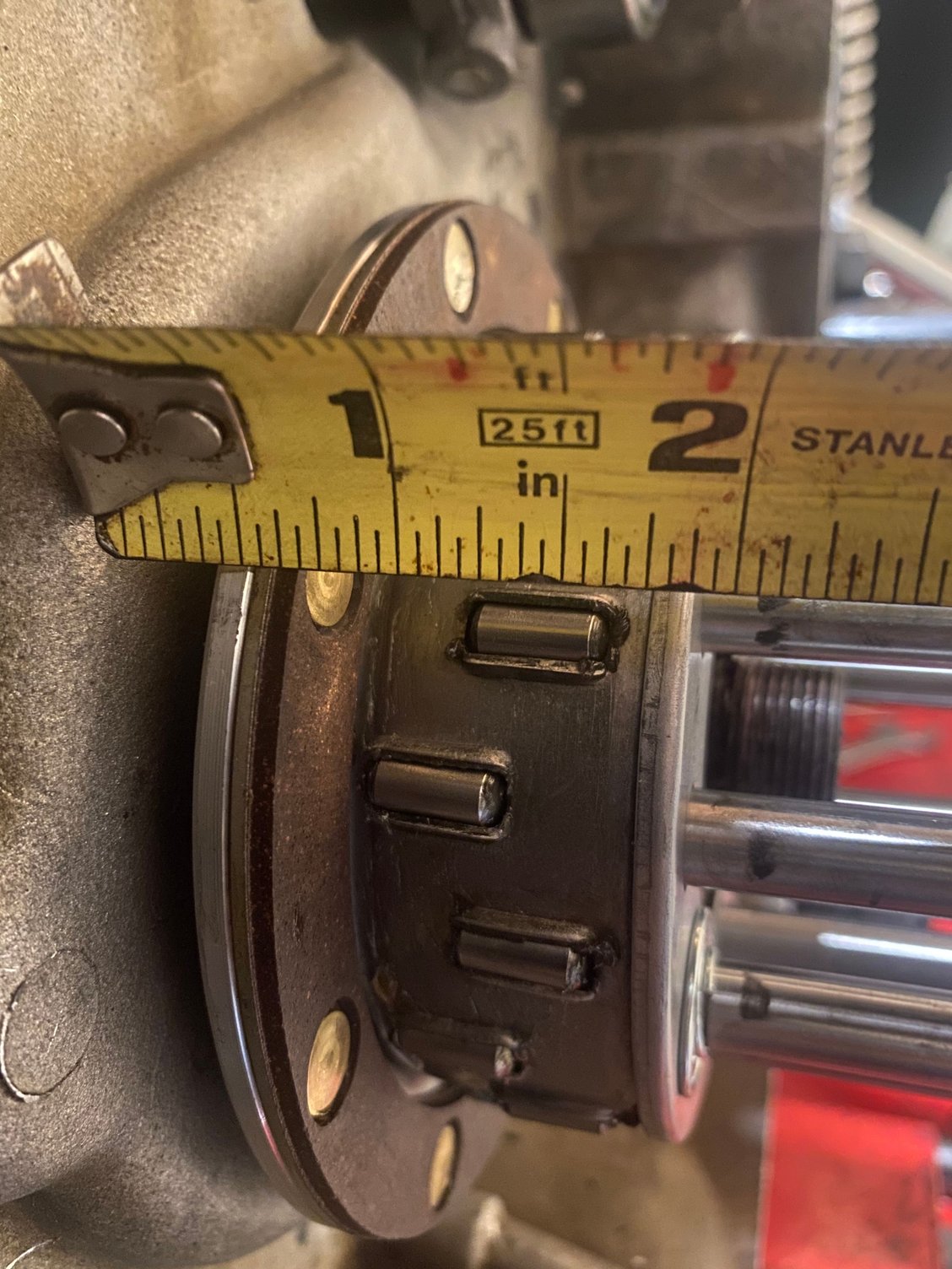 I think I have found the problem, It is the new clutch hub, I put the old hub back on and did some measurements and and found that the diameter of the out put shaft hole is about .035 Smaller confirmed by the Indy that I use. It will not go on the shaft as far as the old one and makes the chain drag on the out side bracket of the chain adjuster. Putting the old one back in allowed the chain to clear. I will have a new one tomorrow and see what happens later this week when I have time to fool with it. Old hub measurement from inner primary to clutch hub Measurement of the new ( bad) clutch hub