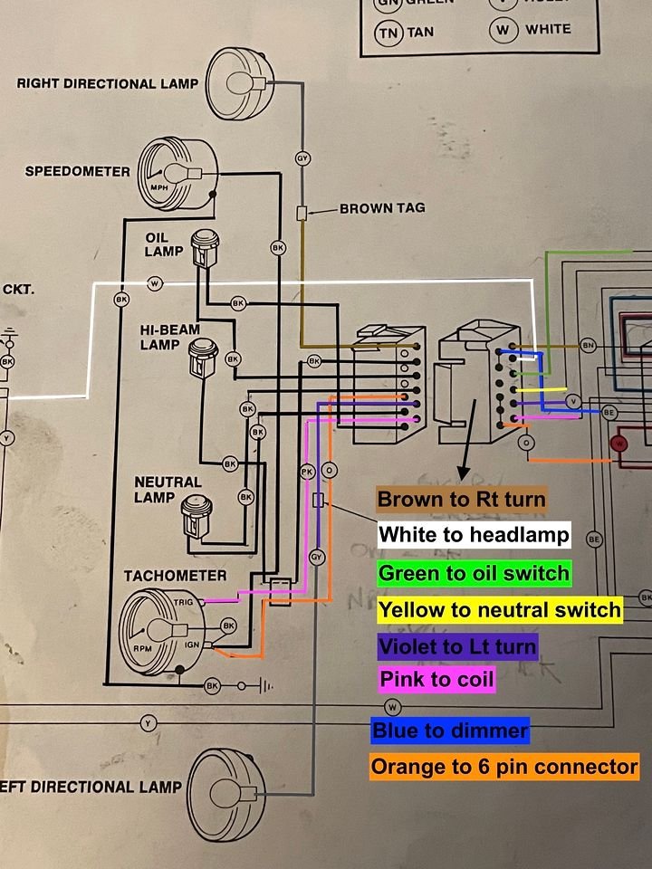 Yestedray I went back into the headlight bucket to try and isolate the problem. When I remove the flasher from the mount at the bottom of the headlight bucket, and I depress the right turn signal button, the oil signal and neutral lamp do not flash. And of course since the flasher needs to be grounded, neither left nor right turn signal light activates.