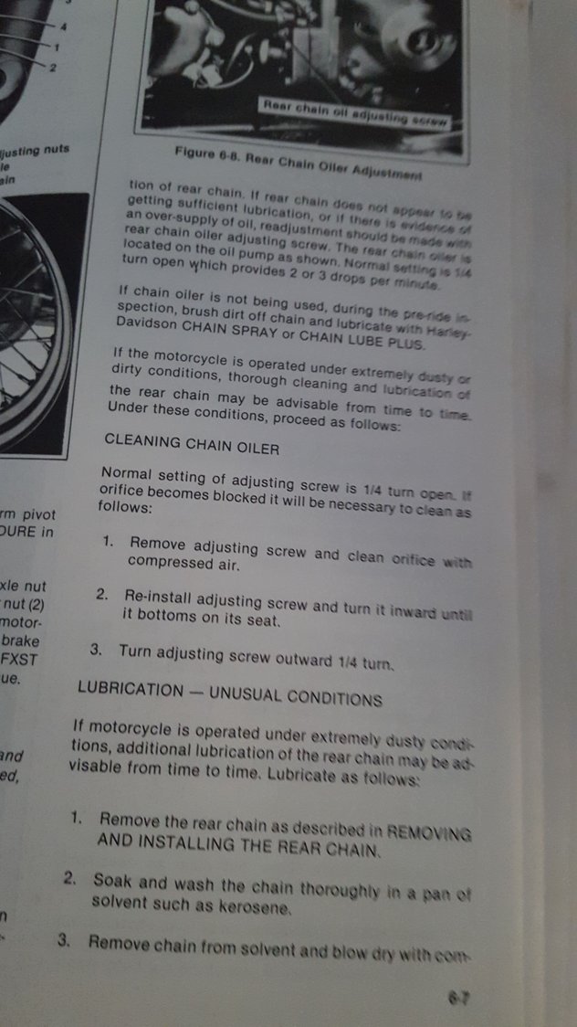 Chiming In just cause I want to know too. I had an '81 and i remember that thing left oil everywhere because the chain oiler seemed to deliver too much to the chain. I remember cranking down the oiler screw on the oil pump to the point almost nothing was coming out. And I know I only checked it at idle then put the outside cover back on so cant say what it did when throttle was off idle. I'll pull out my HD manual tonite to see what it says. My current '81 is belt pri mary but most of the manual is for chain drives.