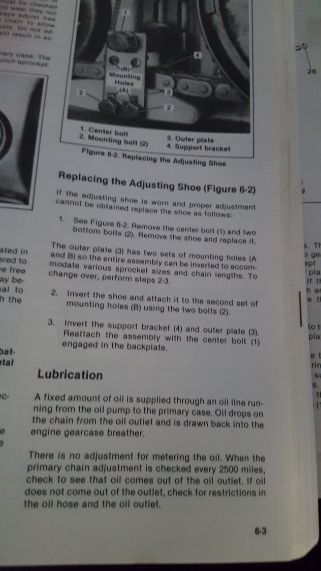 Maybe my memory isn't so clear after 40 years. Seems there is no adjustment for primary and the secondary drive chain is the only adjustment possible. Anyway this is from my 35 year old H-D FL/FX Manual.