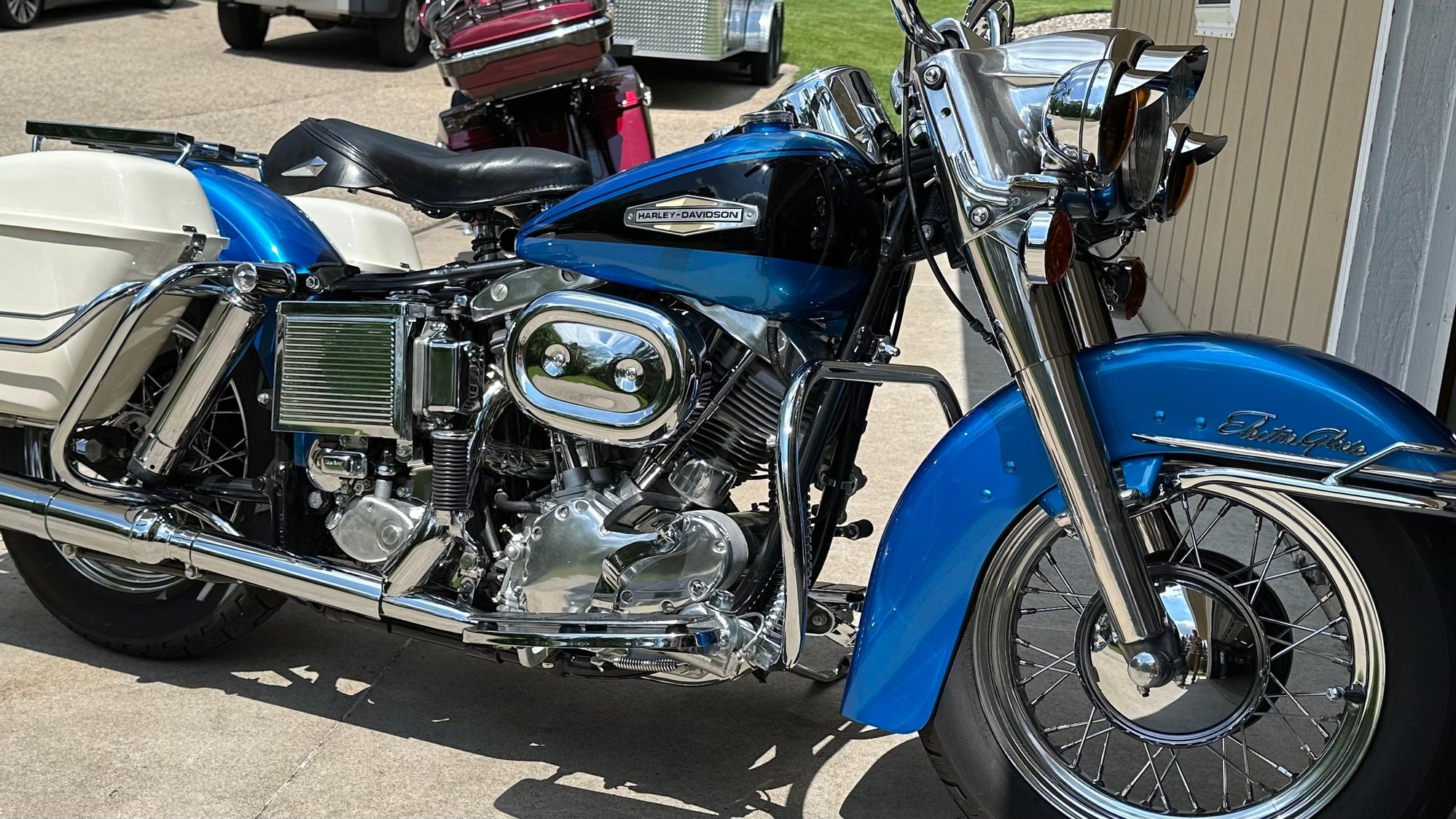 Nice bikes. Here's a pic of my '66. Emblems are birch white also. I looked at all my literature and every pic from '66 through 71 shows them white. Just wondering why these were black.