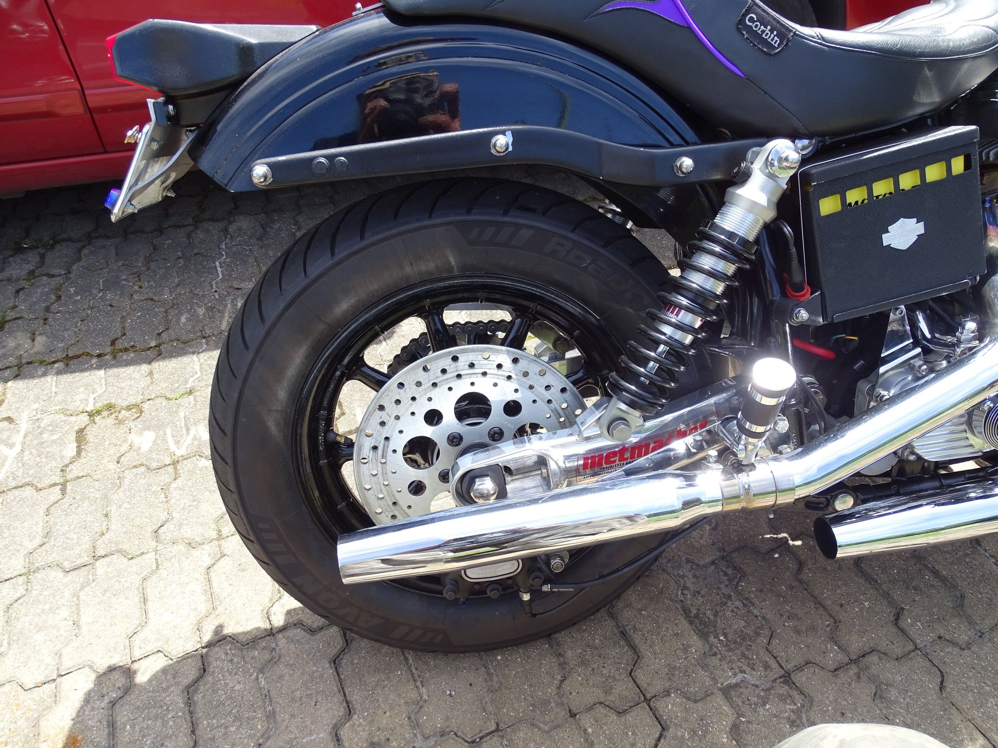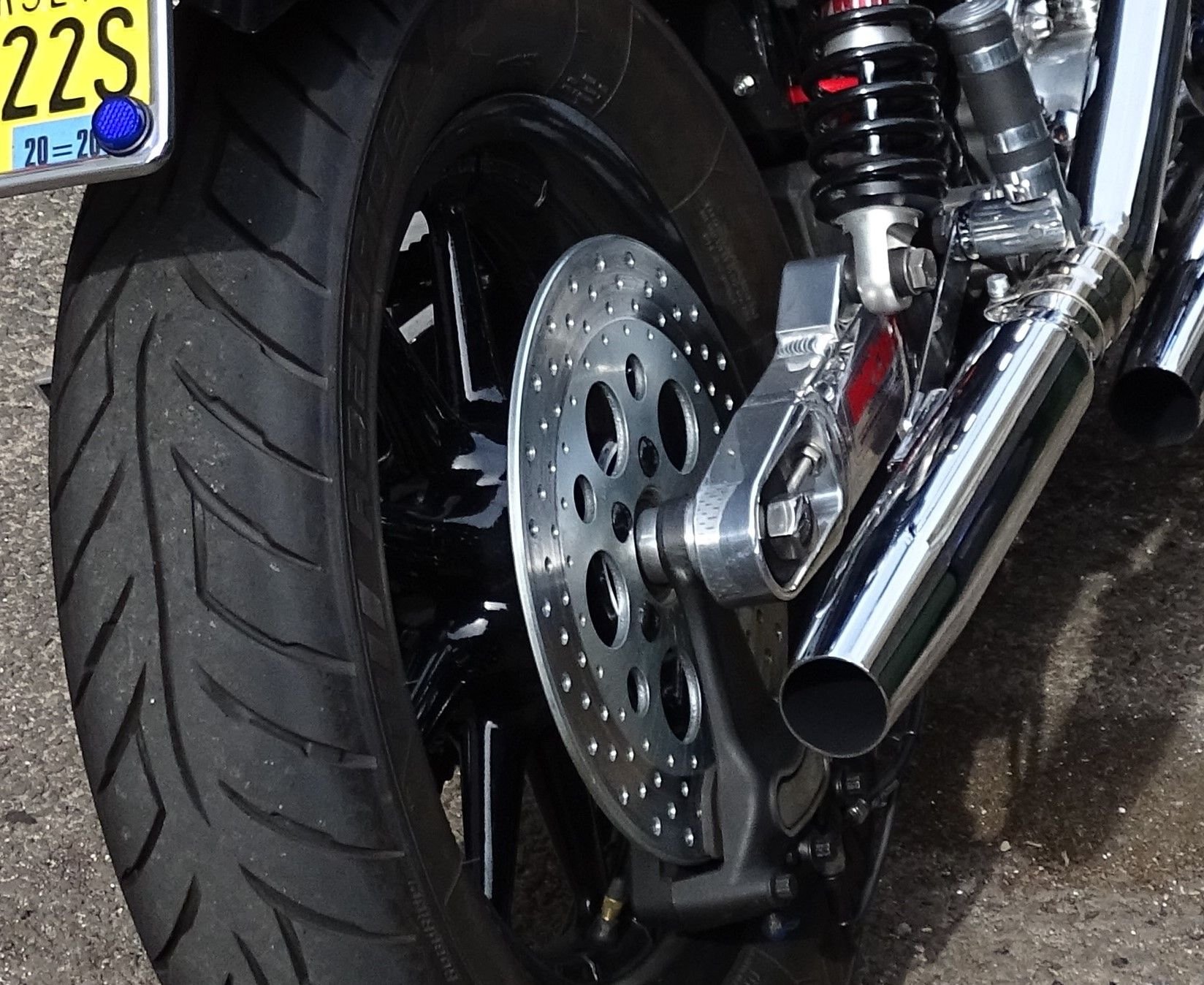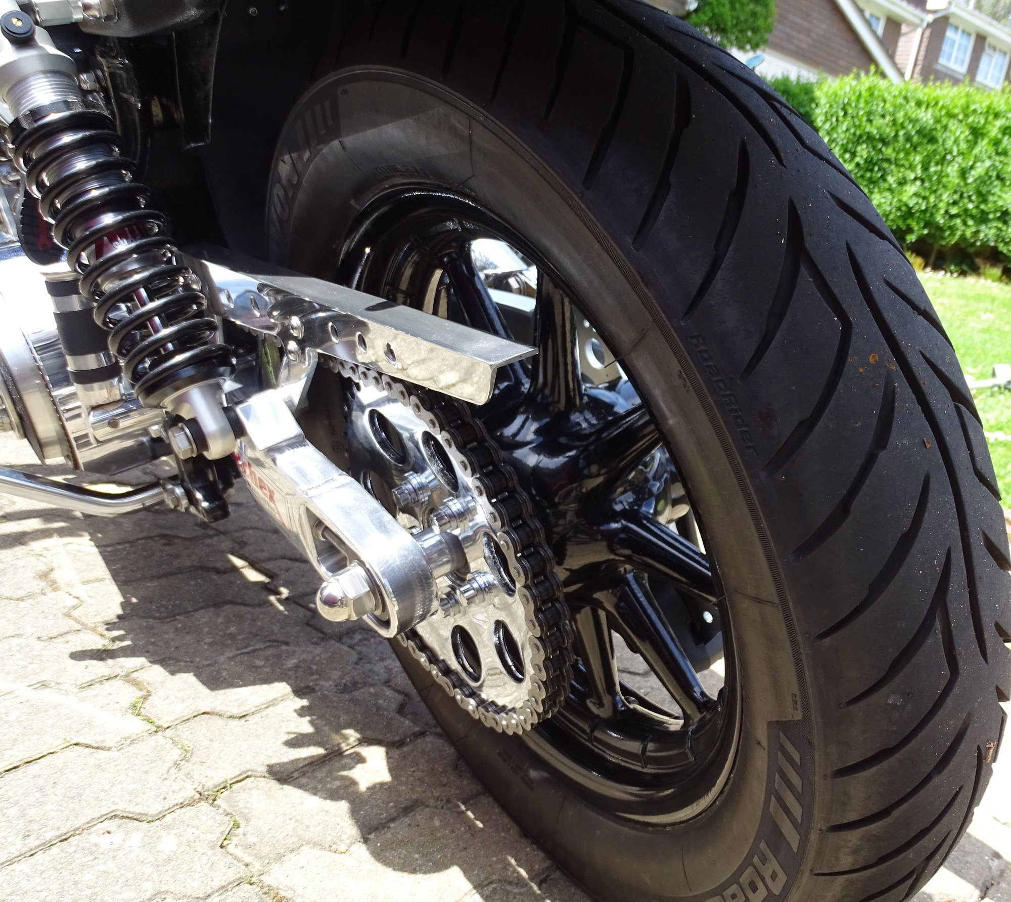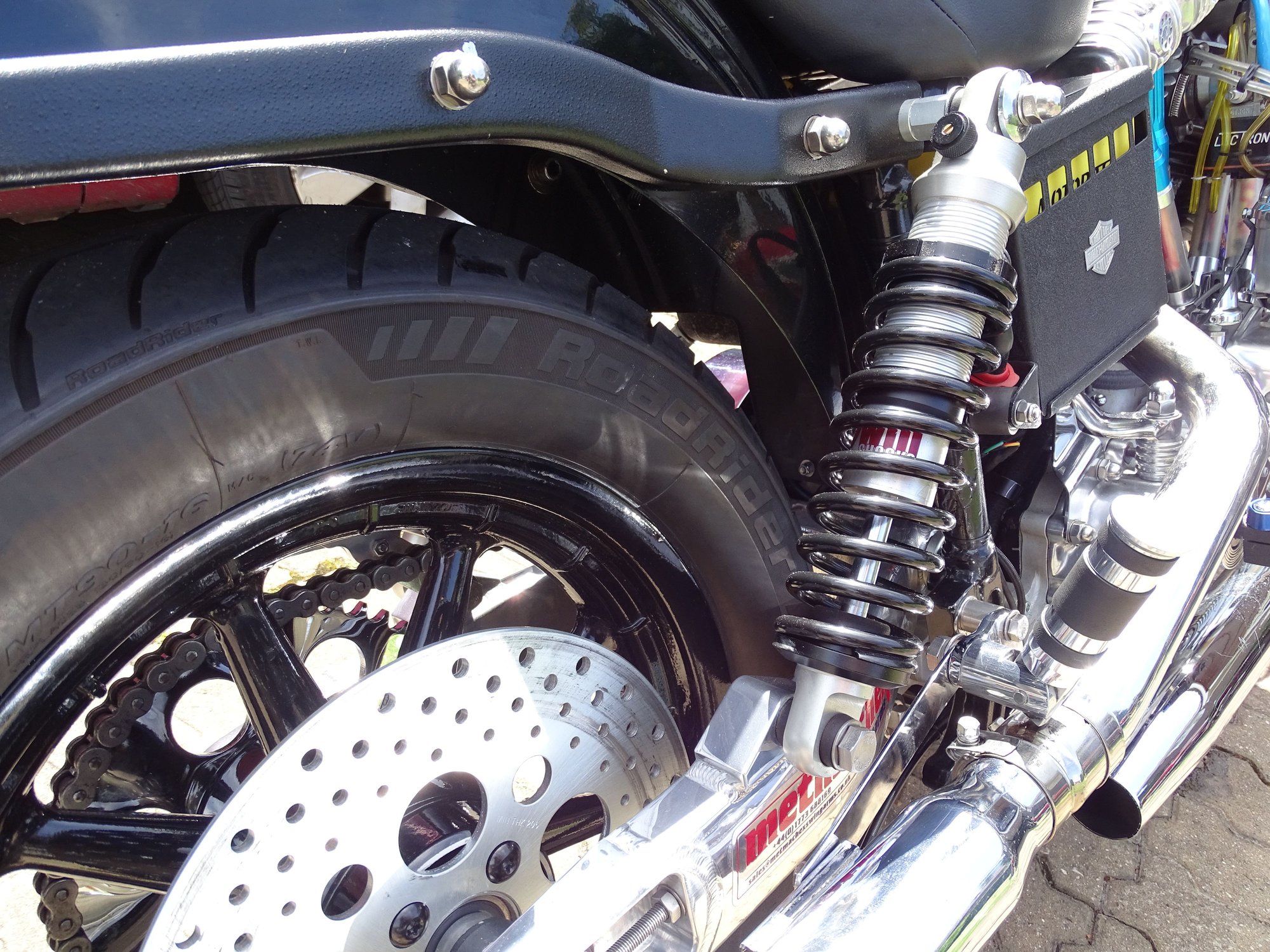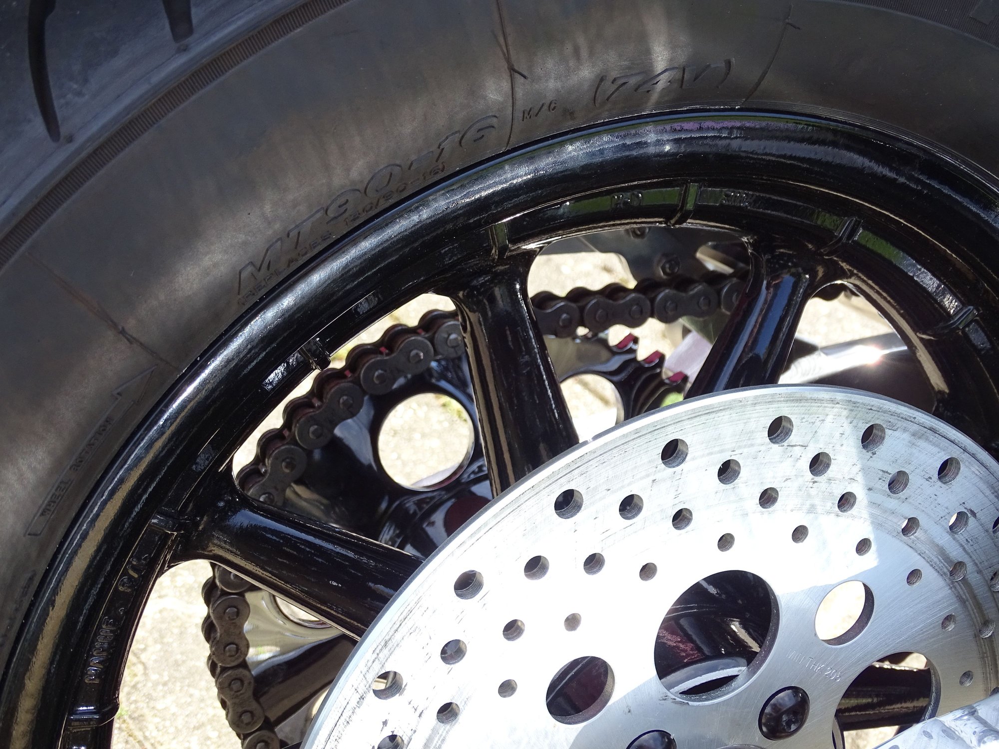 it should fit easily, maybe with a dished sprocket and spacers,... i recently fitted an 04 roadking 'Wagon Wheel to my 78 shovel and to be honest it was almost a drop in unit as long as you dont go for a later Harley 'fat' rear wheel as the swingarm will not allow a fatter rear wheel