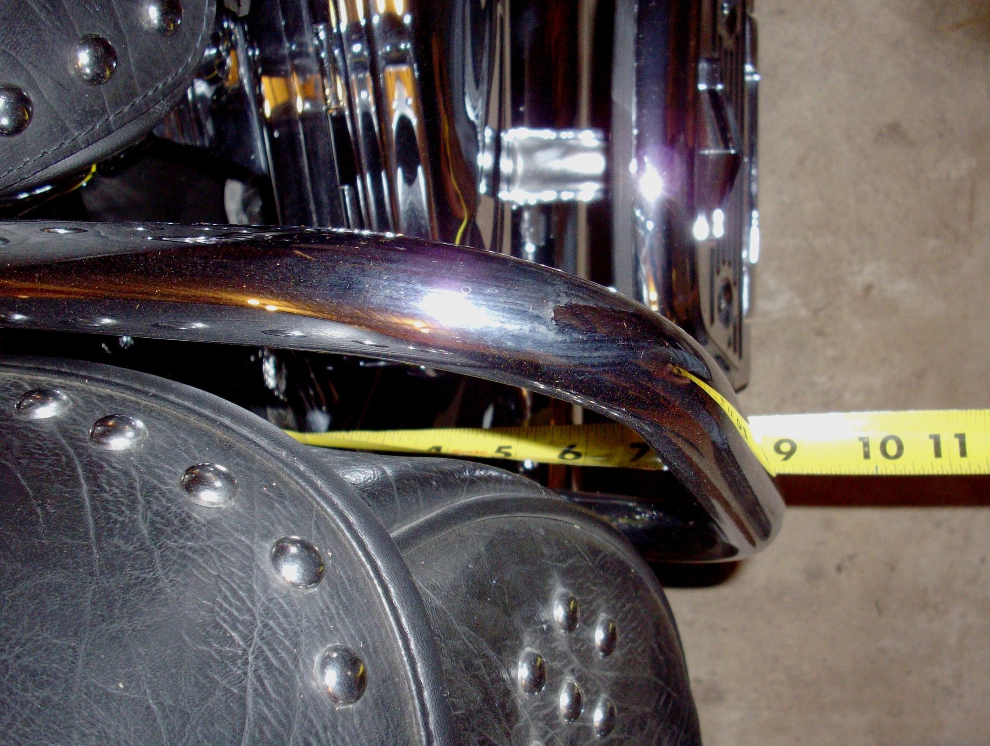 So.... you had me curious. I went to the garage and made a definitive measurement. I didn't take a picture of it this time so I wouldn't be confused in the future. The funny thing is that I couldn't duplicate the 8 1/2" measurement shown in the picture. The closest to it was from the rear lip of the saddlebag to the outside edge of the saddlebag guard.