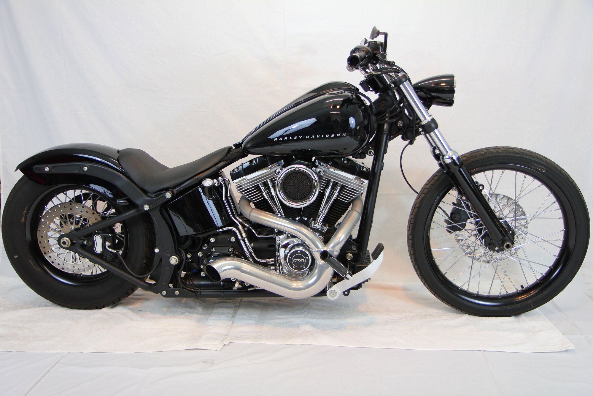 I'm trying to get a visual of that Blackline with a Fat Boy rear fender, wrap around front fender and some chrome paughco 40" staggered drag pipes..