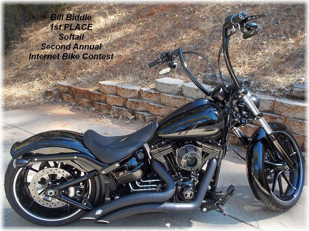 With plans for future mods, I've decided to start a thread and list the current mods and post some pics. Then keep it going from here. I didn't post any before pictures, but I'm sure anybody reading this knows what a stock 2014 Breakout looks like. With mine, almost all the chrome, including motor, has been powder coated, removed, or replaced with a black version. The air-ride is in and I love it! I have a Rocker C with a lot of chrome so I went to the other extreme with the B/O!! There may be a part listed but not shown, but I'll update pics soon. If you have any questions or are curious about a part I might have forgot to list, Please let me know! I still have a few more contrast/edge cut parts to add, but the next mods planed are back on the performance side, first a rear tire upgrade to a Metzler 880 260mm this week, then next will be cams/rods and a front fork springs upgrade and then ???????????????