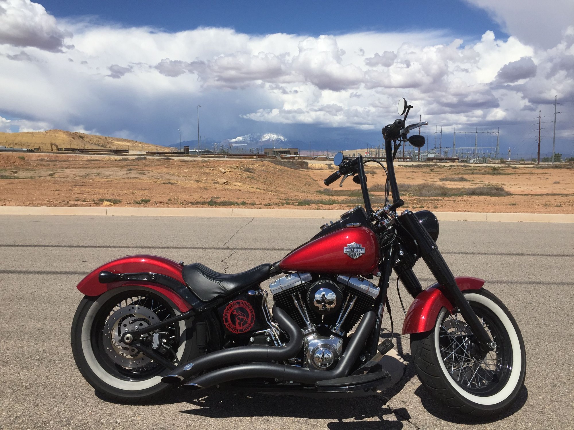 As mentioned earlier, you can use an air or progressive shock to further control ride height and shock rebound (this is up to the individual, both have pros and cons). I originally had stock shocks with lowering bolts (you can also adjust rebound on stock shocks). The stock shocks with lowering bolts were a tad harsh on large bumps so I went to Progressive shocks. I lowered the ride height about an inch and adjusted rebound to my liking (I only ride one up on my Slim). This is an old pic of my final set up. Rides great, does not bottom out and I never have to worry about a failure in an air system as I would have to if I ran air shocks.