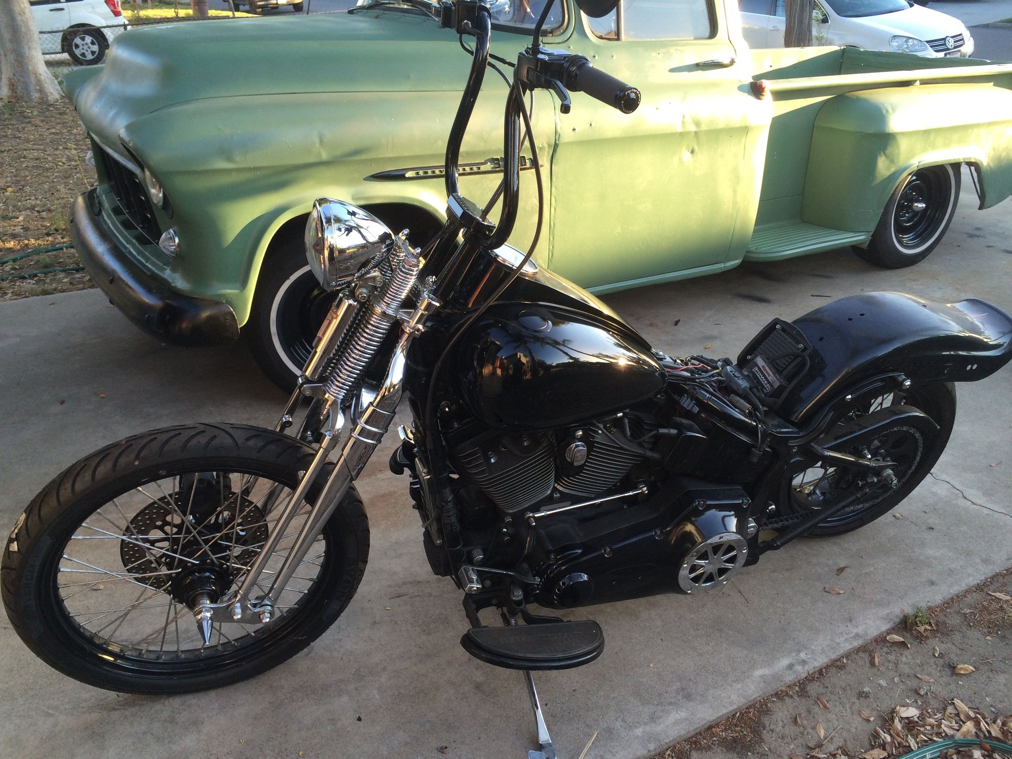 I also slammed the rear end using the Arlen Ness lowering kit but I went for looks to begin with and dropped it by 2" but the ride was too hard and I eventually adjusted it to just an 1" lower.