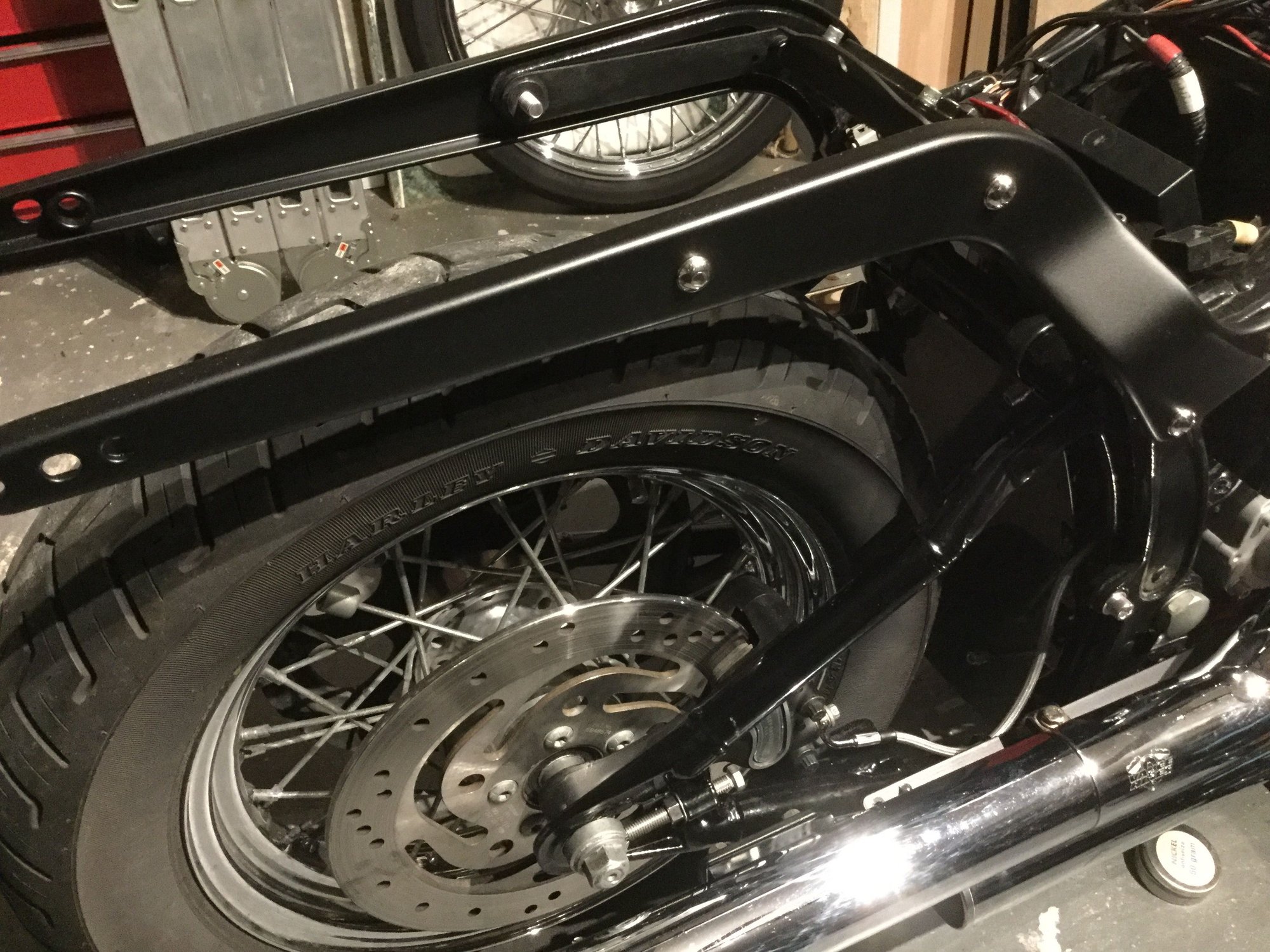 The rear struts have been powder coated in satin black to contrast with the gloss mudguard... will that's the plan!