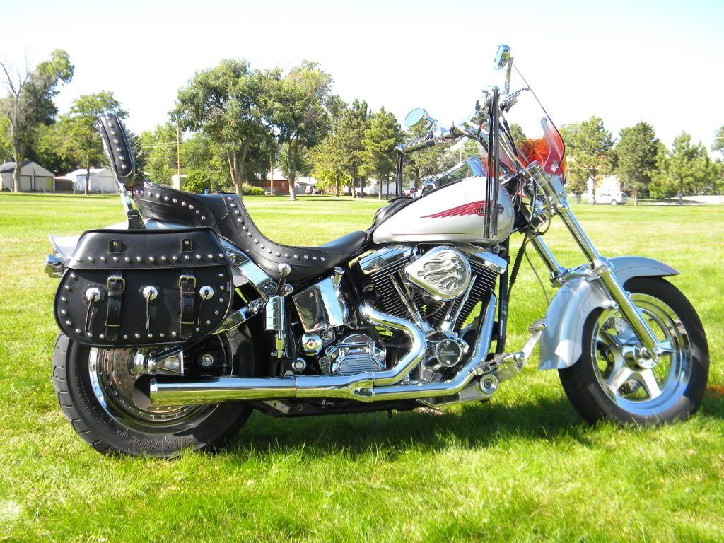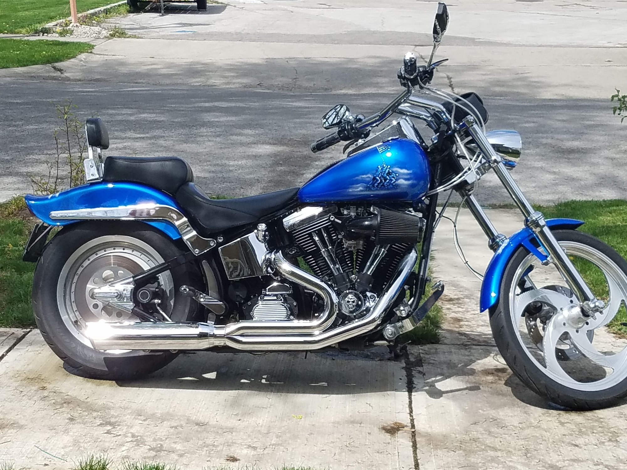Here's my 99(last year of the evo FXSTC) w/a 16 inch front HD Thunderstar wheel on the front and a color matched fatboy front fender. Chrome fatboy rear wheel. EVL 3010 Cam., S & S Super E, Kerker 2-1.