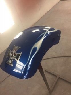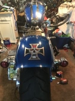 OK so I had removed my stock fender as the Danny grey was popping me up every bump now that seat was lowered into frame, rides better, just no comfort, So I have a Stock Breakout Rear Fender, The Harley Struts and all the goodies to mount it up, Had it custom painted, and heres the work in progressKuryakyn