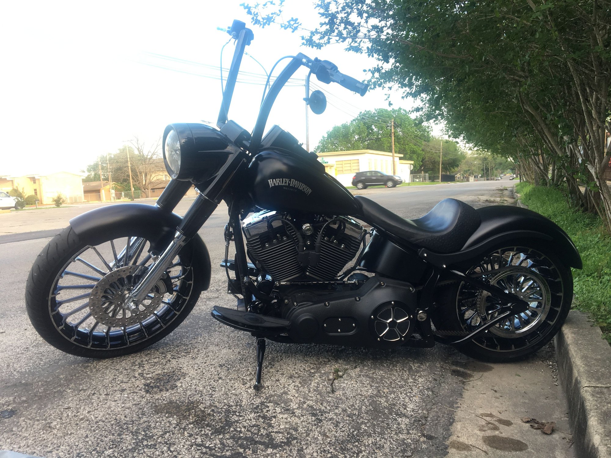 Loving the new look and 21 wheel on the Fatboy. Oh yeah, I already had 3 degree trees on bike previously - I know its not required for 21 wheel. Couple pics before and after: