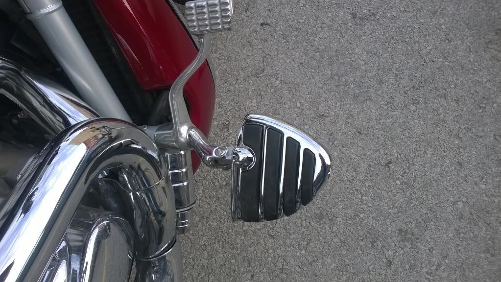 I have noticed that I can relieve the tension by relocating my feet to the rear passenger pegs, when I do that, then the handlebars feels great and also the pressure points on my butt go away, that is why I thought maybe mid point footpegs could help too....