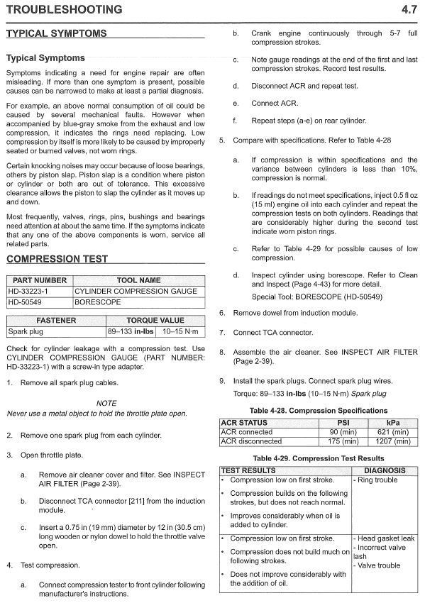 With compression releases, dual plugs under gas tank and throttle by wire. What's an easy way to perform a compression test. Is it ok just to start it for a second? Honestly had never thought about it before.