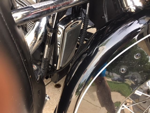 I think it relies in part on the airflow created by the wheel/tire turning. Damage to the cooling fins won't be more than cosmetically unattractive. Damage to the lines would of course be an issue, but they are pretty well protected by the fins.