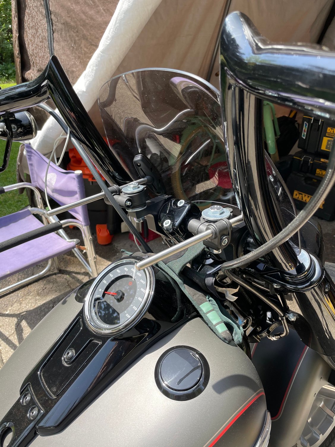 Had to engineer some additional clamps and spigots to adapt to the 2” 50mm apes. Nothing available from MRA for above 32mm’ will be cutting the bars to appropriate length once the settings settle