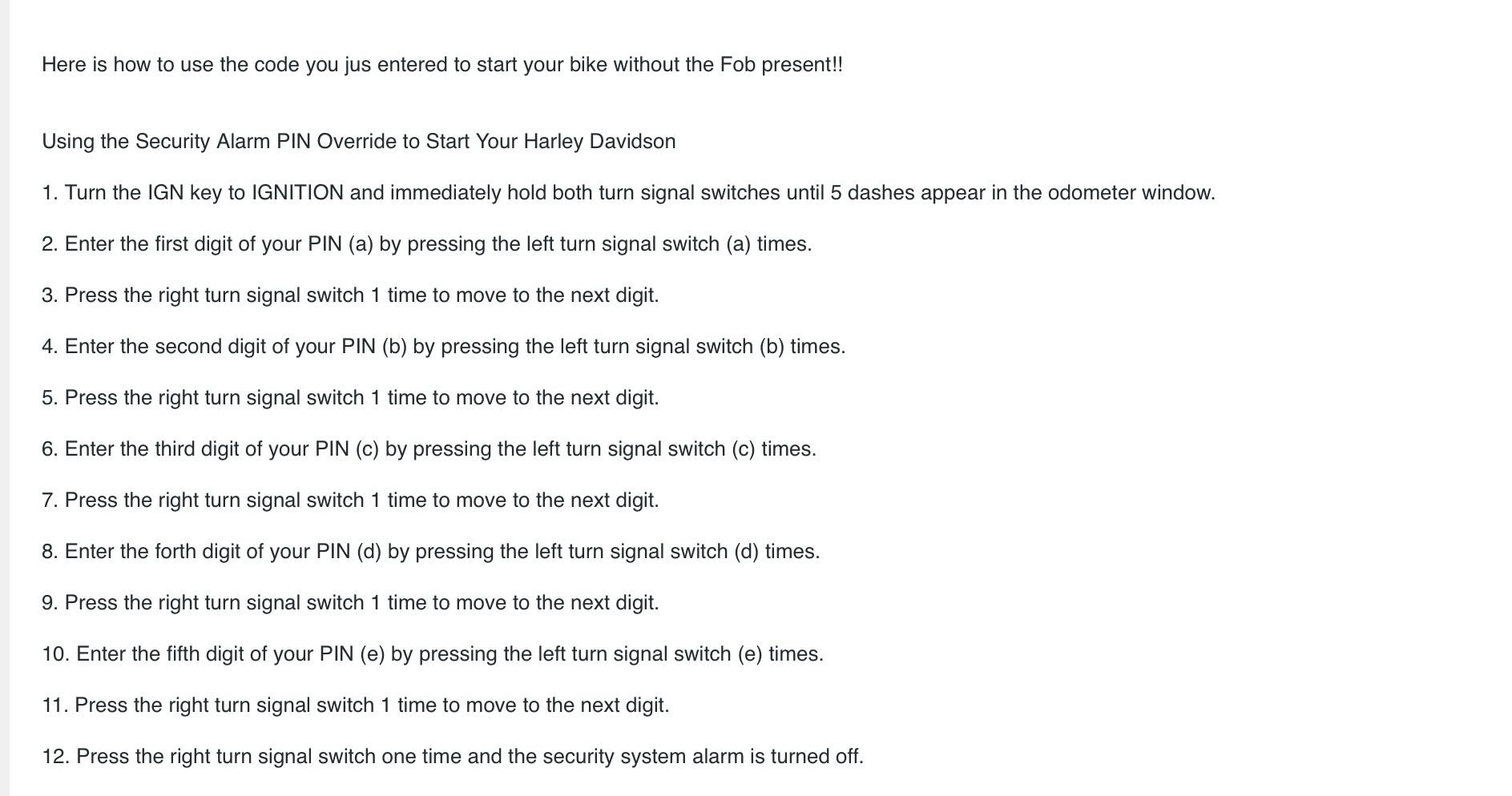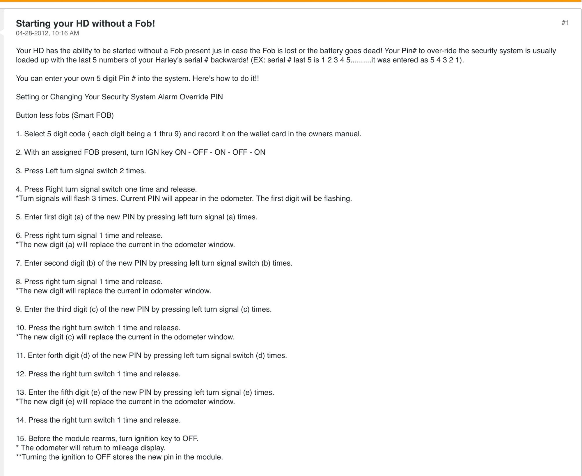 Harley FOBs die as regularly as a retard's pet turtle. You need to know how to start with your code.