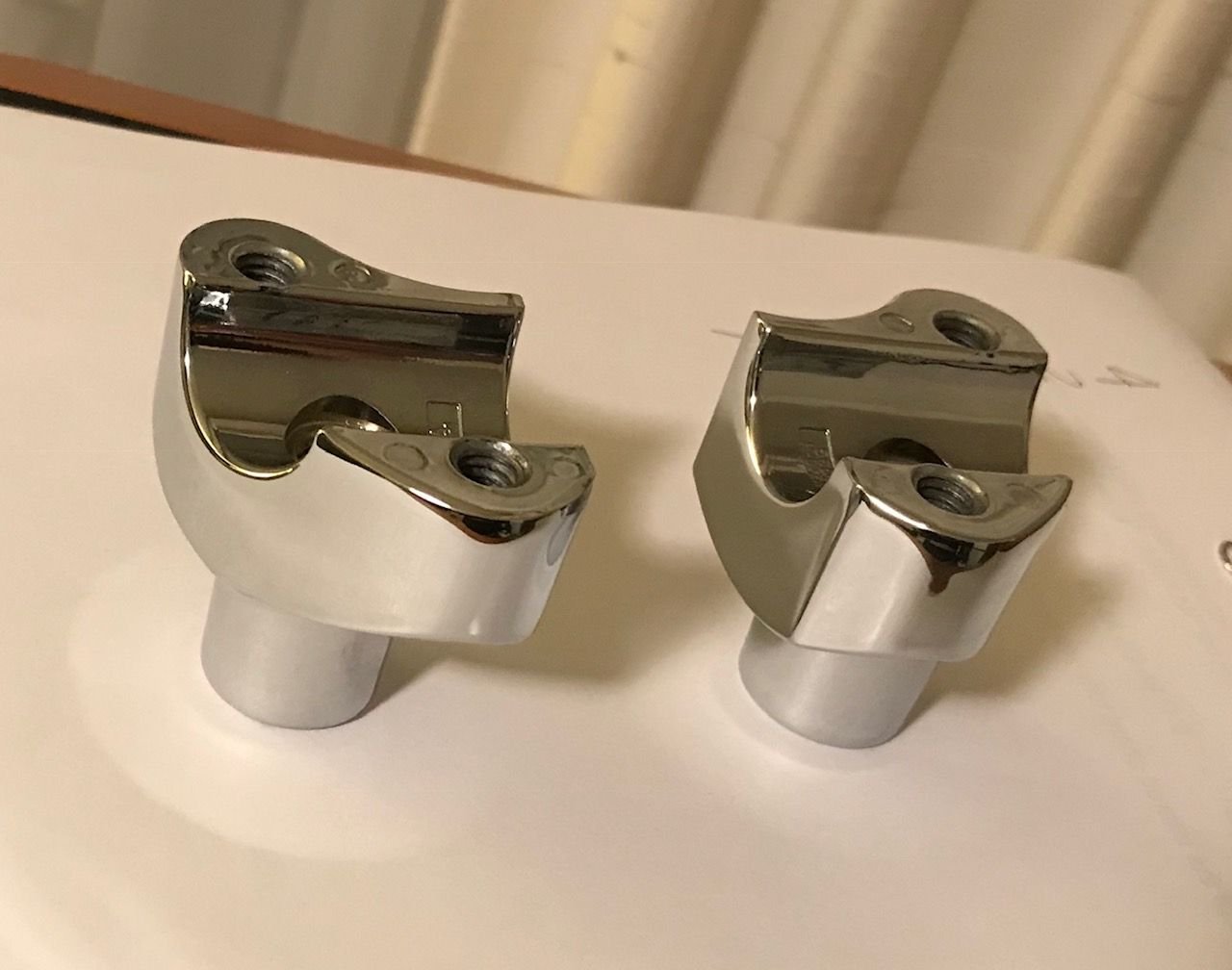 Wondering if anyone knows of a straight short riser swap for earlier softails. Looking for 1.5-2" short straight risers to use with the stock offset top clamp from my 04' night train, and the reasonable priced aftermarket choices don't let the bolts thread right through like stock which I'd like to avoid if possible. Wondering what years of softail have short straight risers that will work with my top clamp.