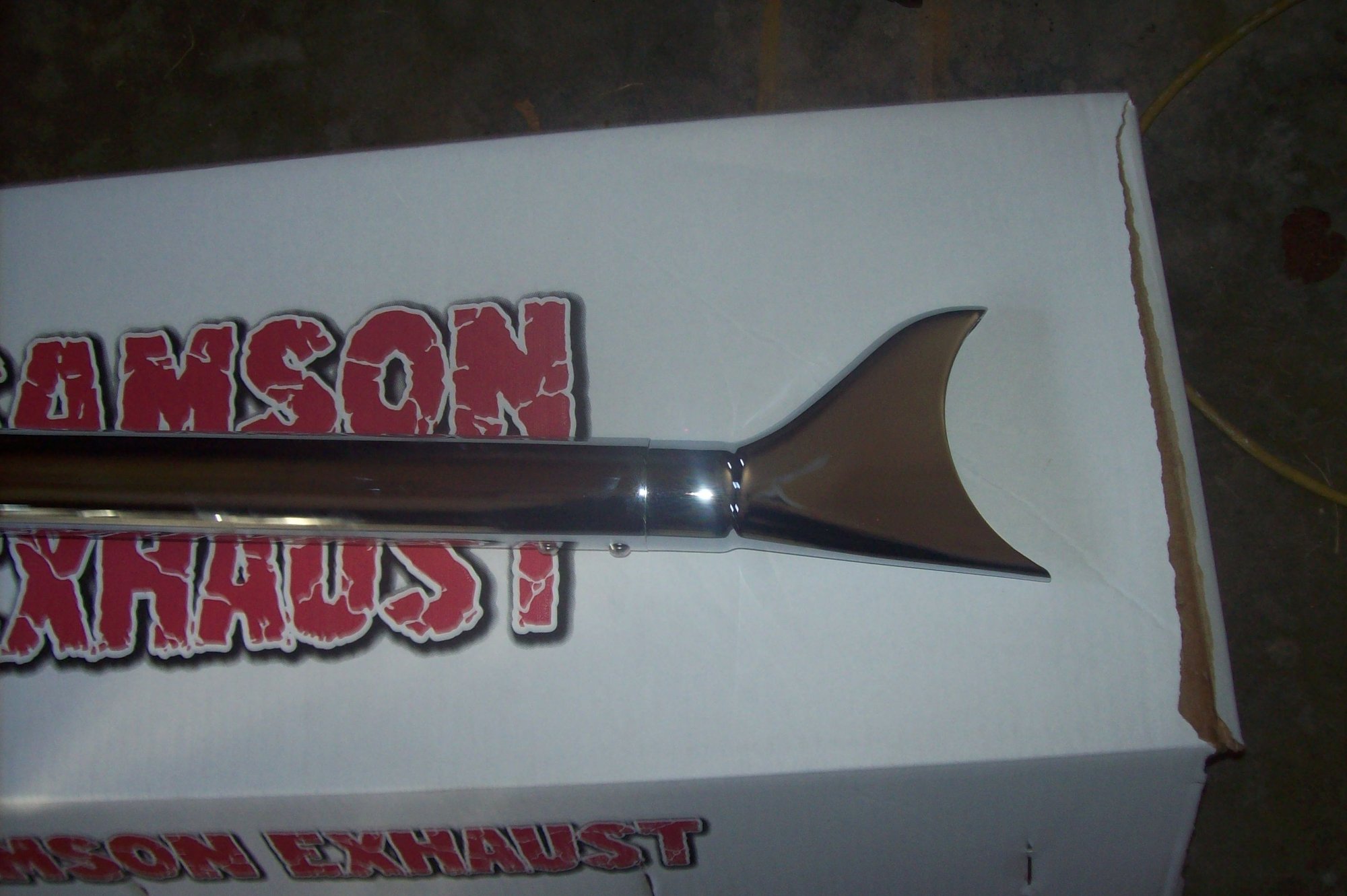 33". i was told the bike has the torque cones in now, if so ill definately keep em. bike is carbed, hsr 42, so if i need to, ill rejet. wanna keep all the torque i can, but ya just cant beat the look of the fishies lol