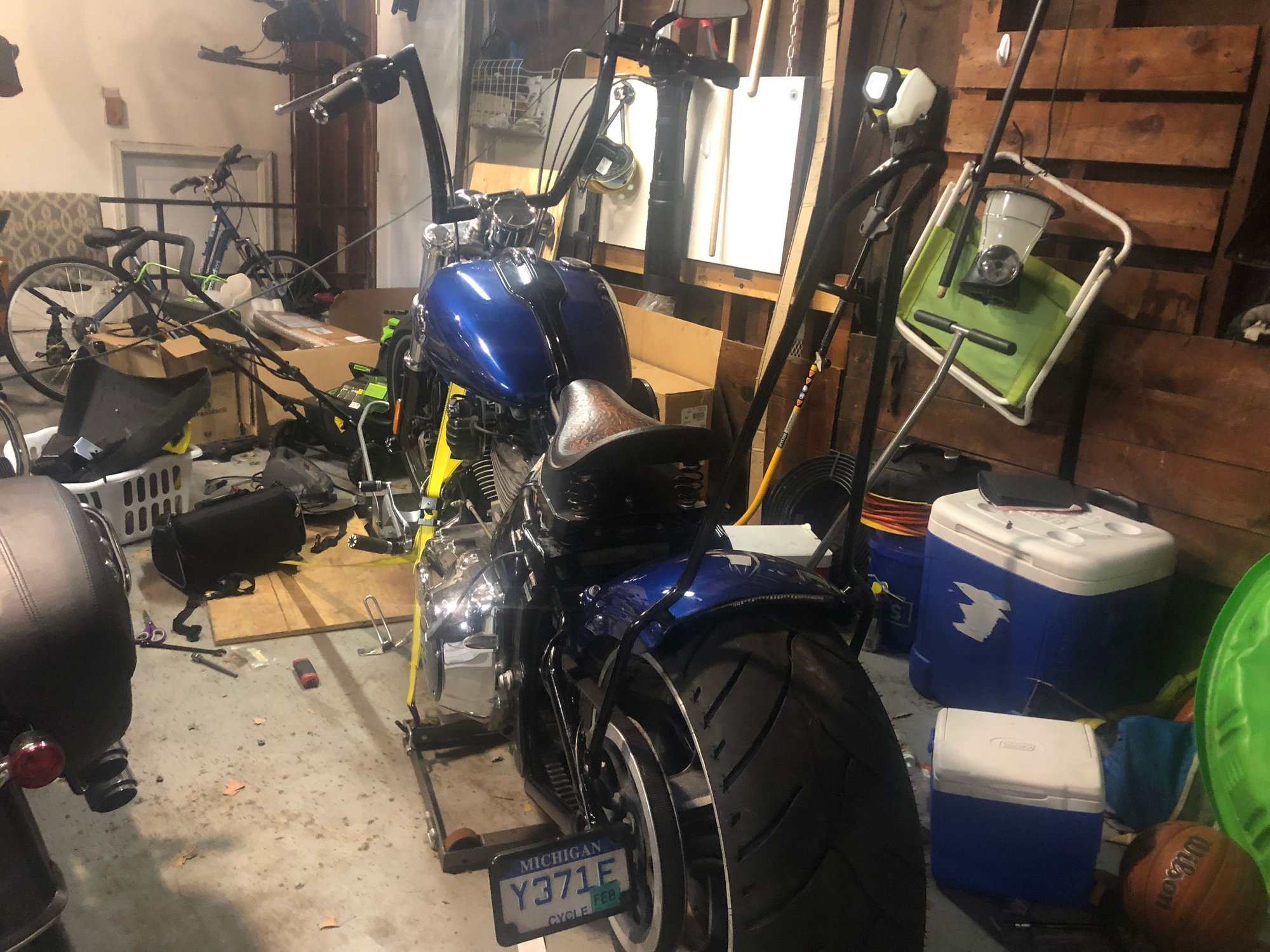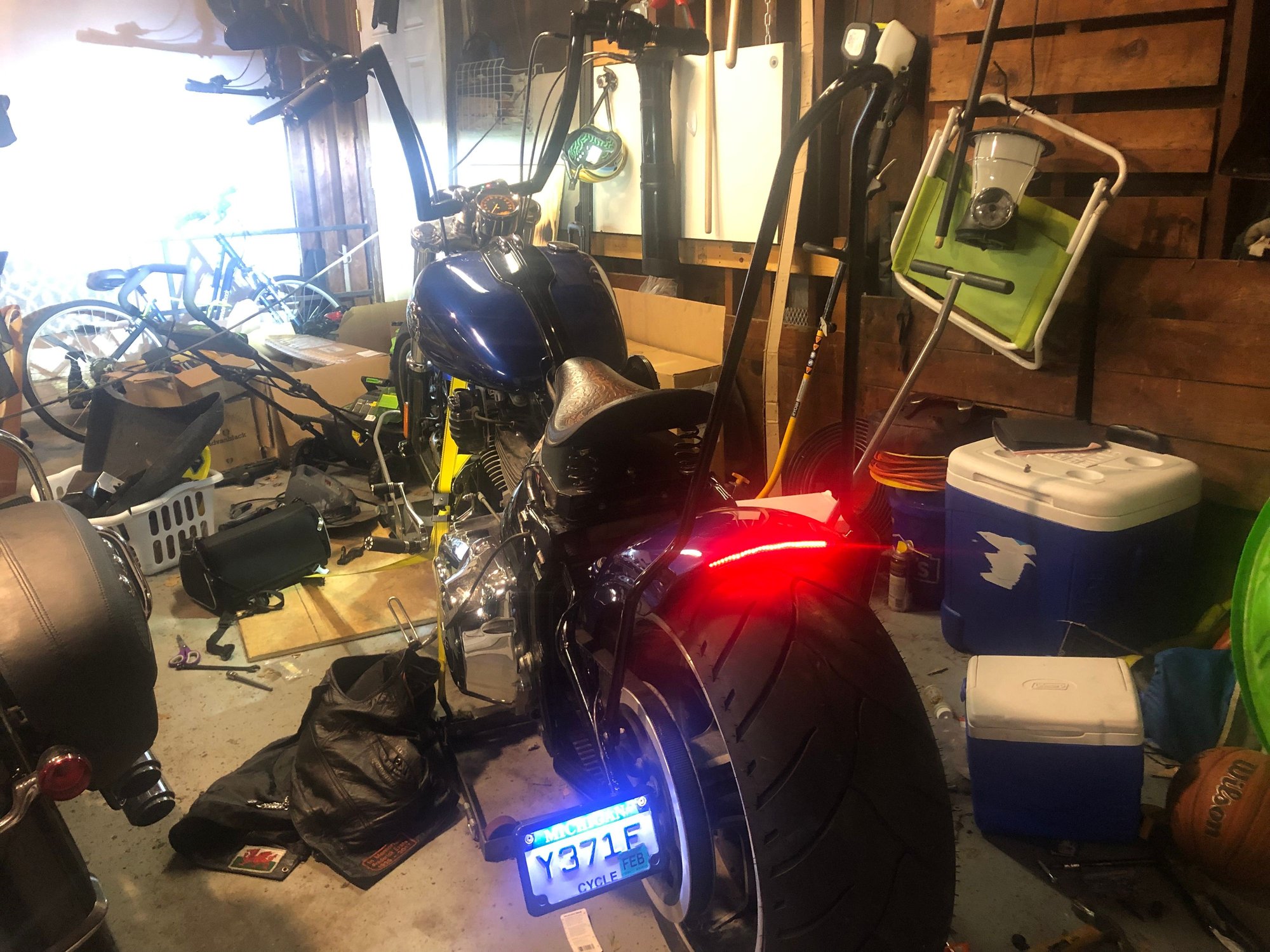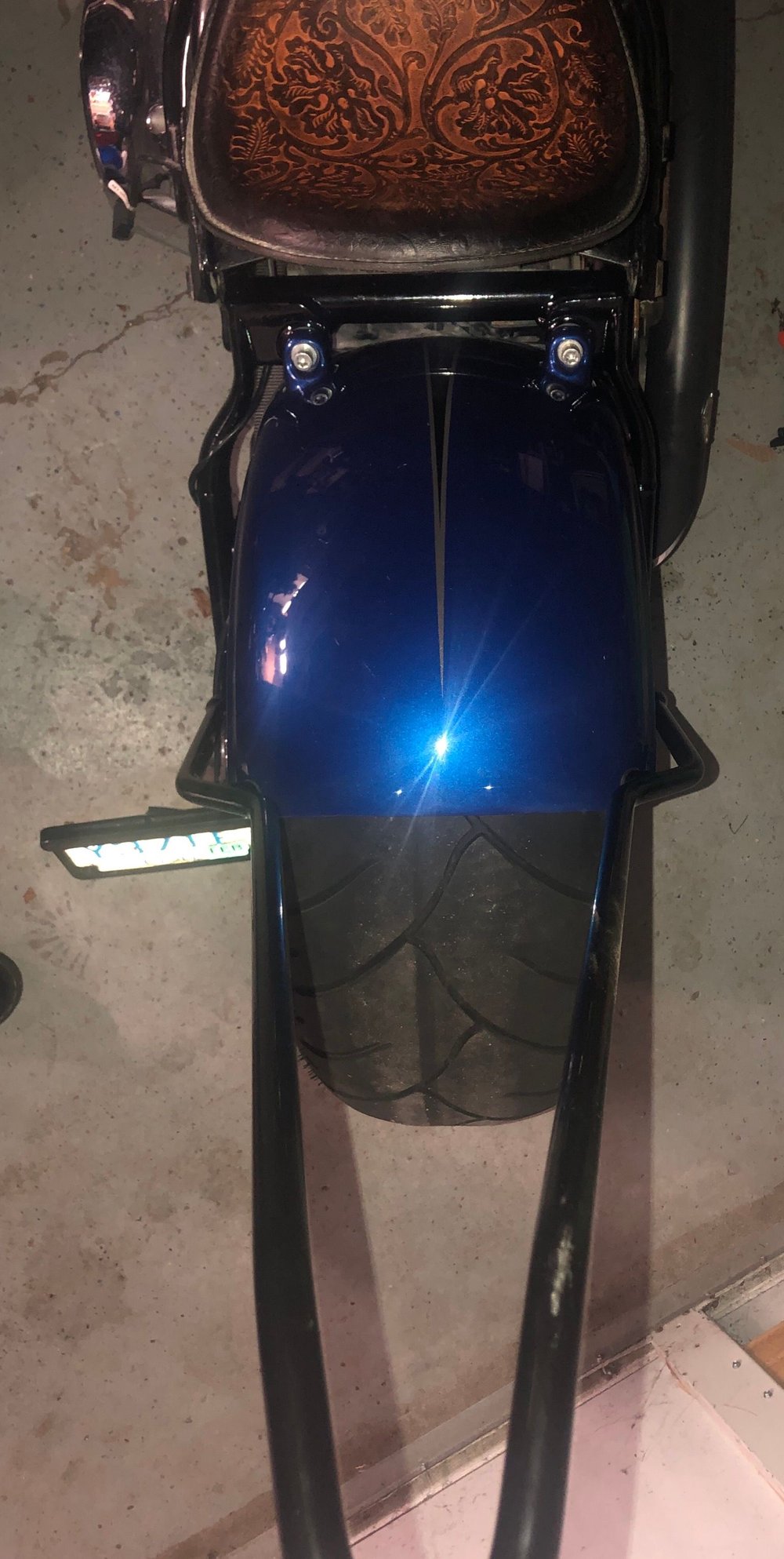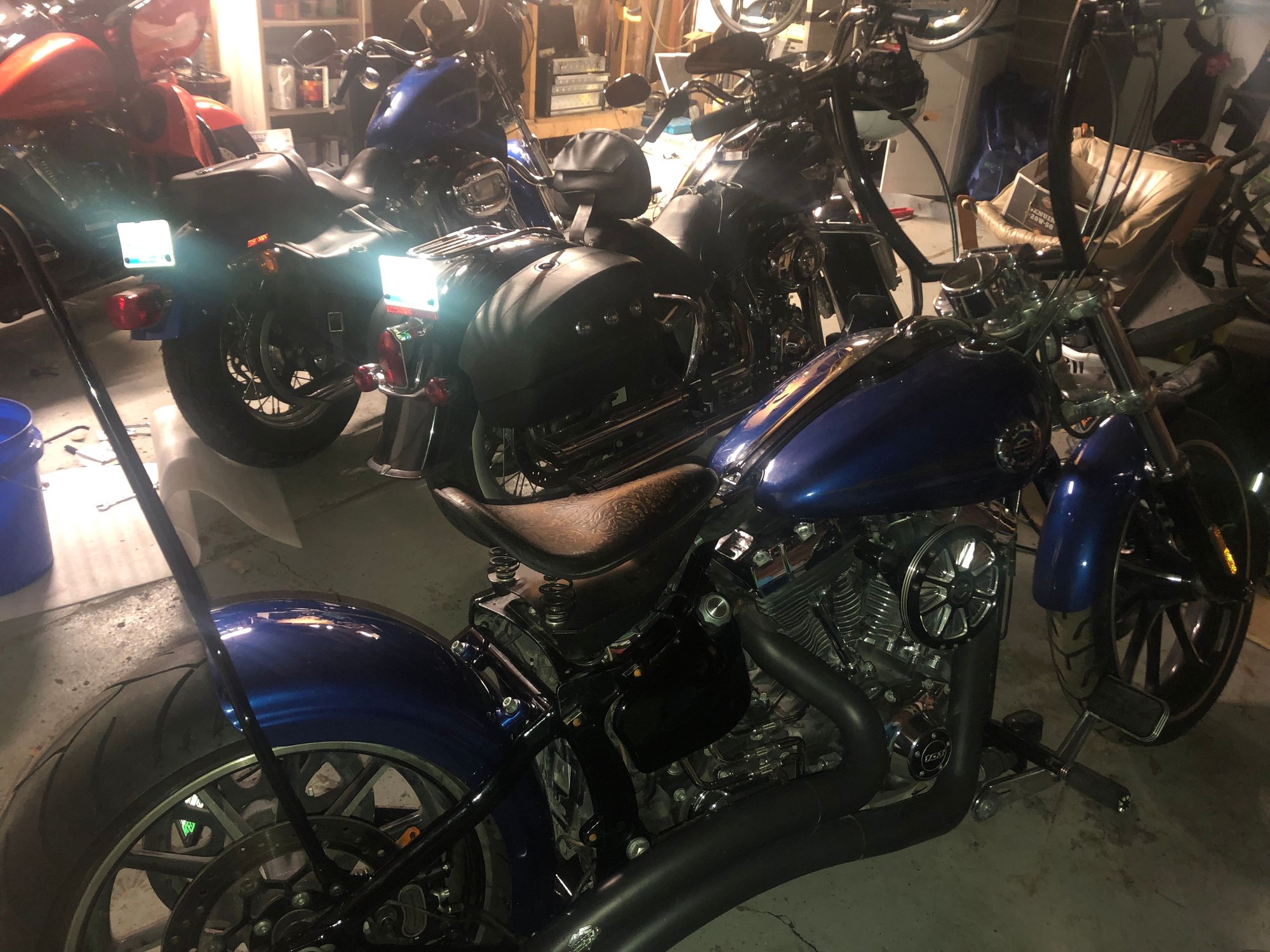 I have a '87 Sloptail FLST. It's been changed a bit. Pretty much stripped down. Replaced the tired engine with a '99 crate, and the transmission with a Baker. Suicide/jockey, electric box from a WW2 Navy plane, plenty of other stuff. Never could decide on the rear fender, though. So far it has had the stock, cut down front fender on backwards, aftermarket hinged, and the current "plastic" fender from some kit I got off eBay. Decided to modify a FatBoy repop front fender, shortened and mounted to swingarm. Seeing your pics has me wondering again, LOL! With a stock height suspension my eyes don't like the distance between the seat and the fender. Lowered suspension might make it look better. Been thinking about strutting this old bike and would lower it as part of the process. Gots to do some cogitating!