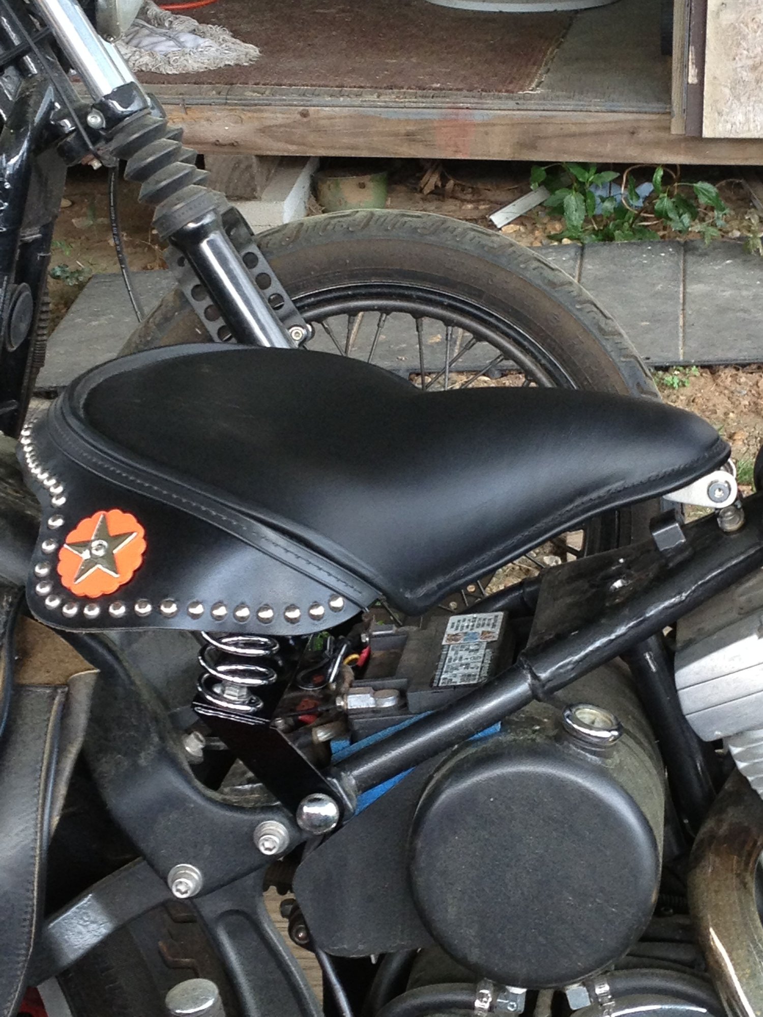 Cop solo on springs with a scrounged passenger portion of an old stock Heritage seat.