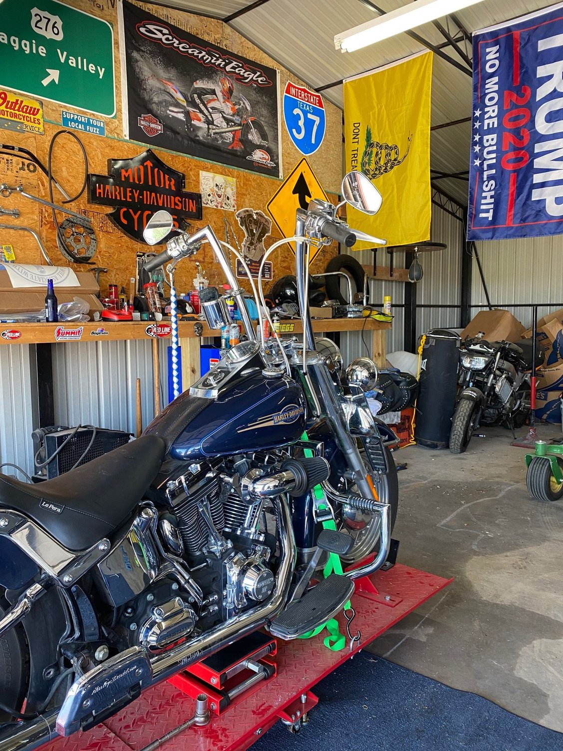 I have a bagger. Gonna buy another one probably next winter, so yea, with 2 baggers her long trip days are over. I still have a pillion pad me and the woman can ride to town and have a couple of drinks.