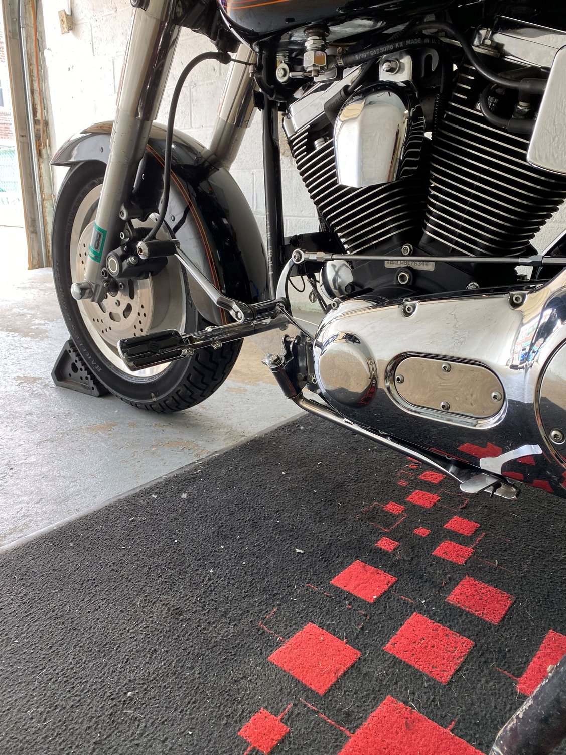 I have a 2000 Fatboy FLSTF, and am looking to add forward controls instead of floorboards. Trying to get my legs farther out...almost sitting a perfect 90 degree bend in my legs with the floorboards. Anyone have any suggestions?