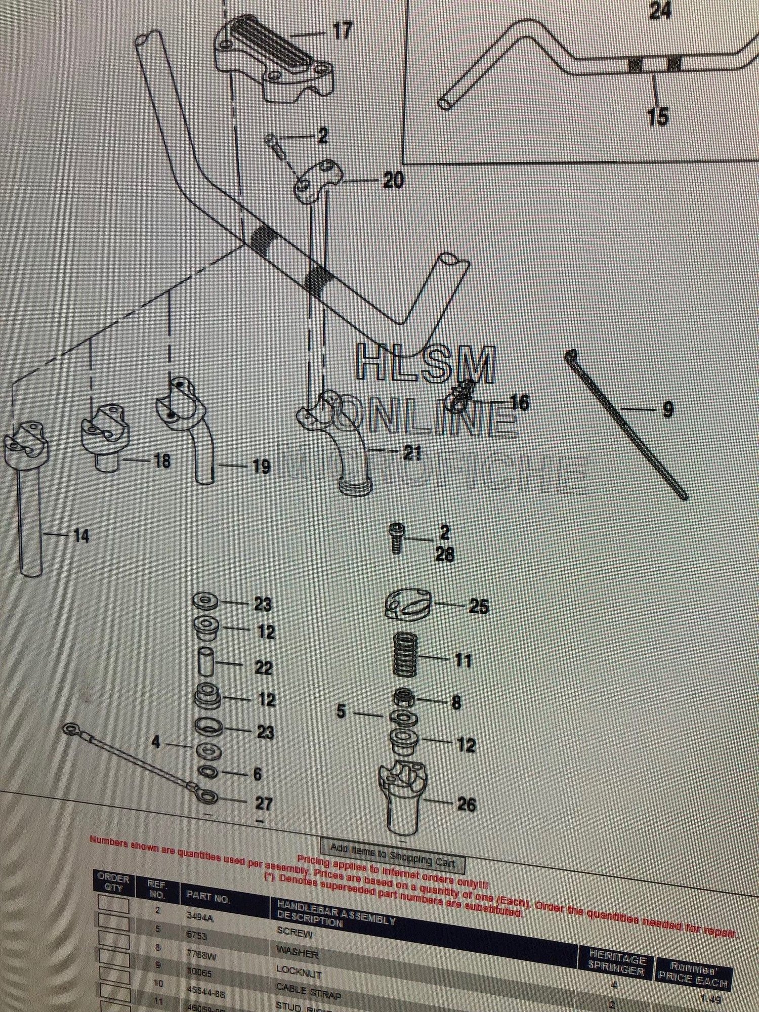 got myself a 2000 heritage springer last year. while moving and loading the bike, i noticed the bars moved with the risers front to back. not alot but they wiggle. pulled riser top off, and there was a spring on one side and not the other. if i remember correctly, i tried to tighten the nuts but they wouldnt tighten any more. the spring was sitting right under the riser top clamp over the nut. i cant find anything online that resembles the setup. even with the spring under the riser i dont see how they would help with tightening the bar risers.