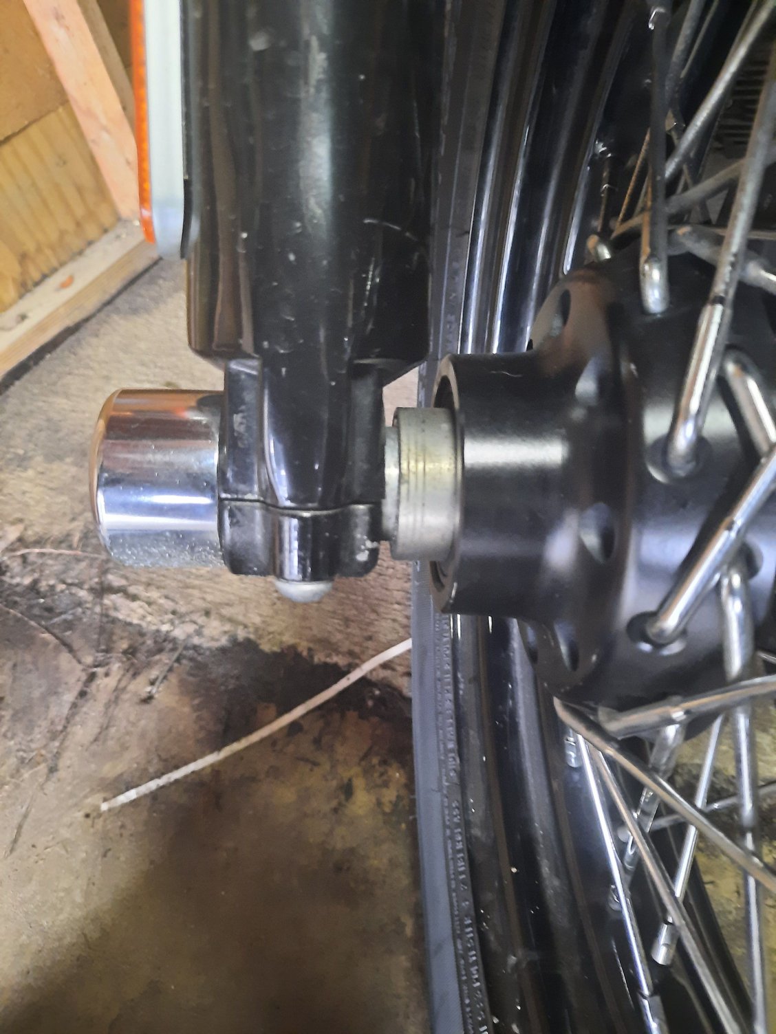 It just made sense after reading this and looking at the parts fiche. That bike would of had a salad bowl on that side of the front wheel, with a step in the axle it would give it the proper space so it wouldn't bind. It just looks wrong without the cover. I always thought the bowl had a flat bottom so it wouldn't touch the forks but it seems the axle is stepped to keep a proper gap.