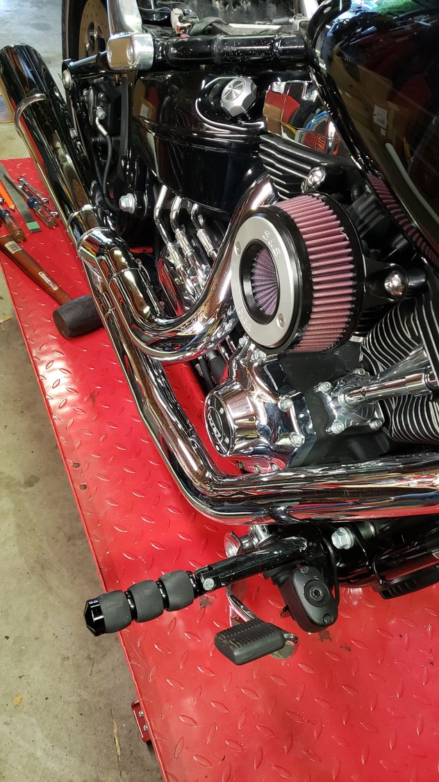 Here are the new pegs from AVON I also installed the matching shifter on the other side, you can also see the new S&S intake and fixed the heat shields on the Pro Pipe.