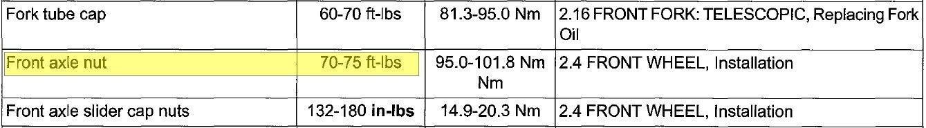 2011 Heritage softail Classic What is the front axle torgue spec Bought a manual but cant find it in it