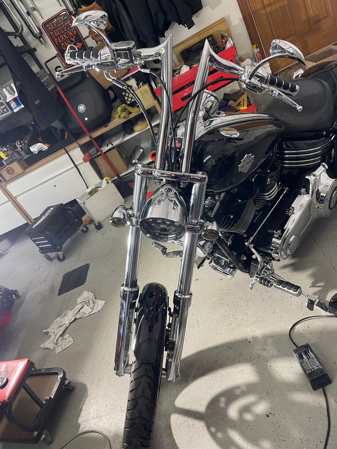 1. Do you have extended fork legs on your bike? If so that will contribute to the flop.